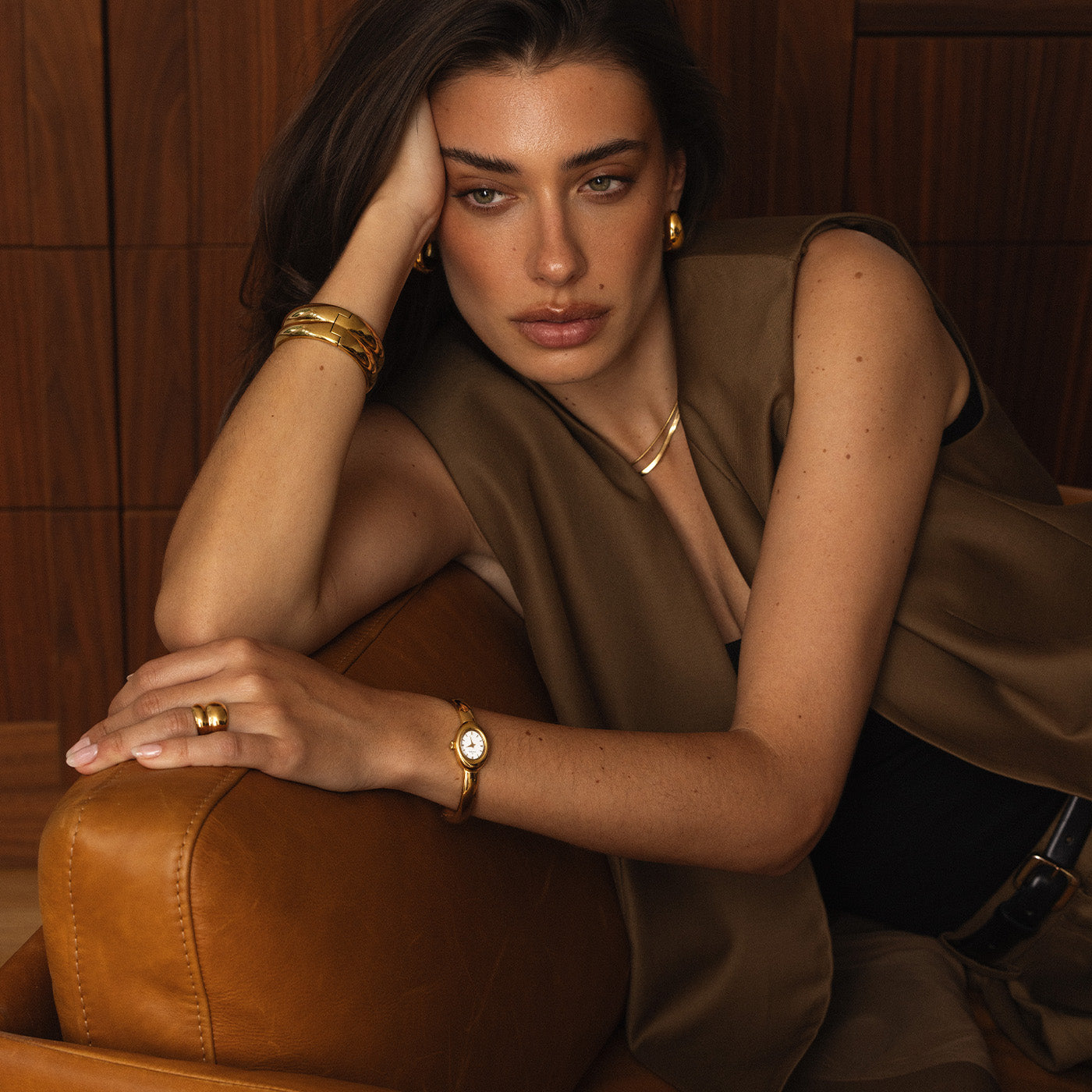 Bär guldsmycken och klockor som ramar in bruna, varma toner med subtil elegans. Möt höstens trender med smycken i en tidlös design och noggrant utformade detaljer för både en mysdag och till festligare tillfällen.