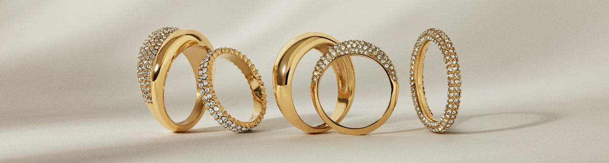 Utsmyckade ringar i färgerna guld och silver. En kombination av klassisk elegans och uttrycksfulla detaljer.