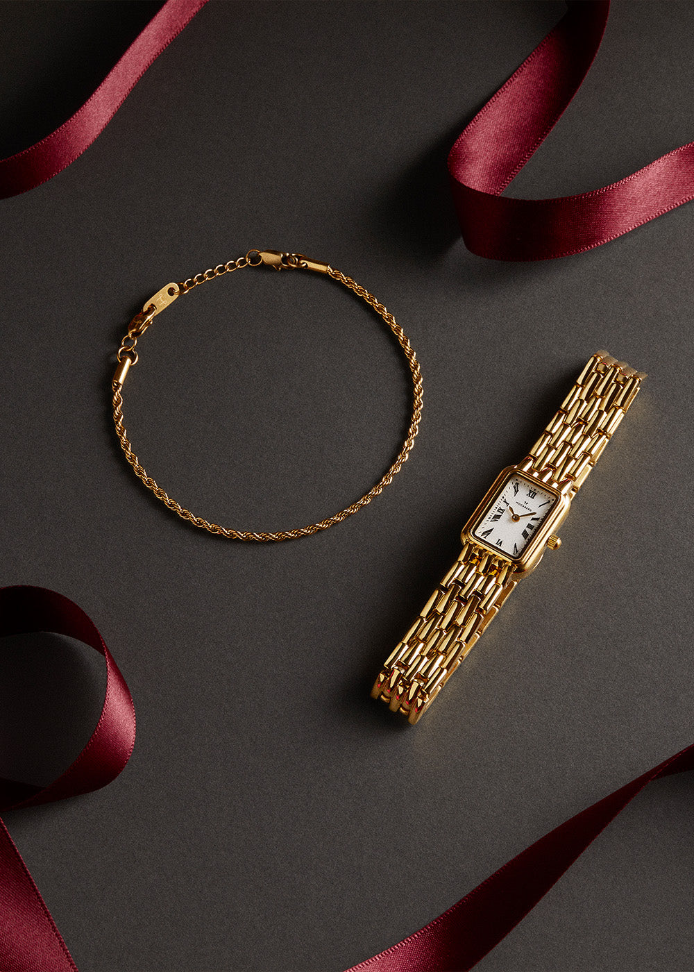 Guldsmycken i rostfritt stål och PVD-pläterat guld. Här hittar du armband, halsband, ringar och örhängen designade att följa dig genom livet.