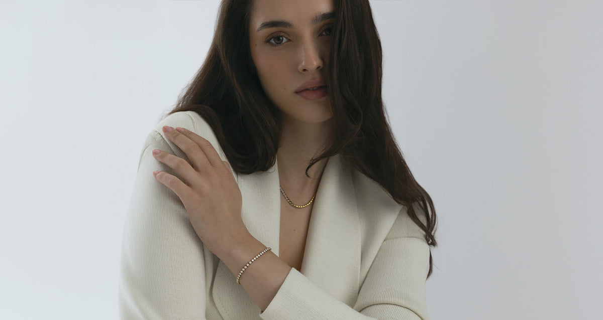 Armband utsmyckade med cubic zirconia som ger en elegant och subtil lyster. En vattentålig kollektion tillgänglig i färgerna guld och silver.