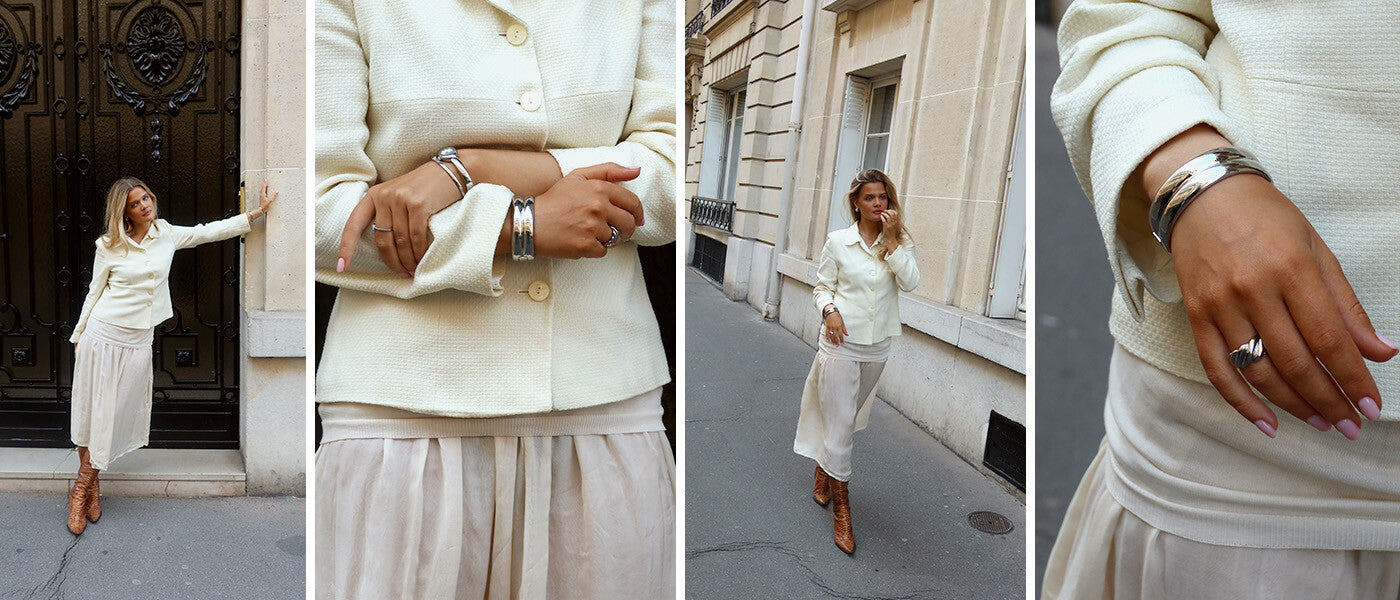 "Jag älskar enkelheten i silversmycken – med nätta detaljer, skulpturala former och staplade bangles som skapar en avslappnad men självsäker look."