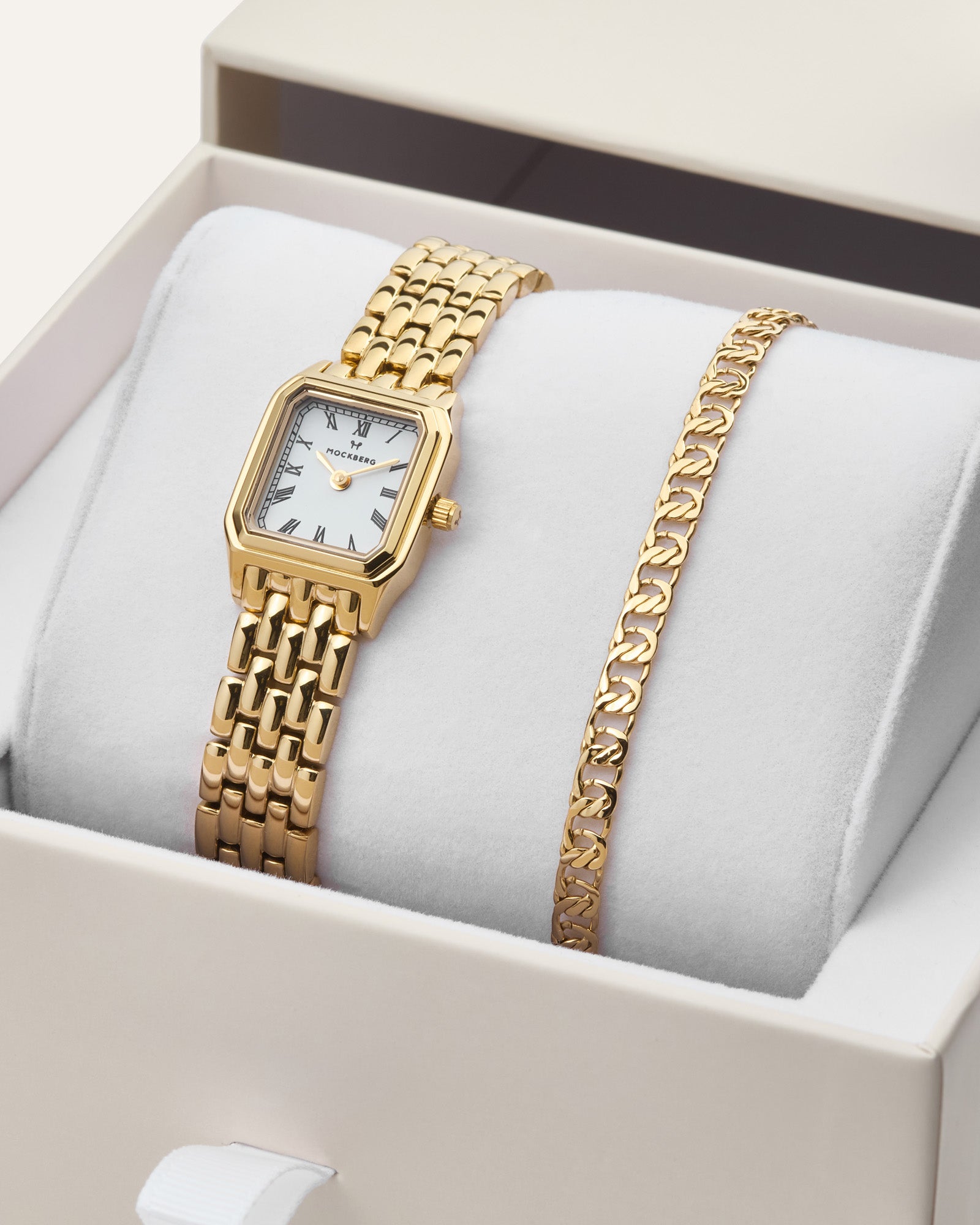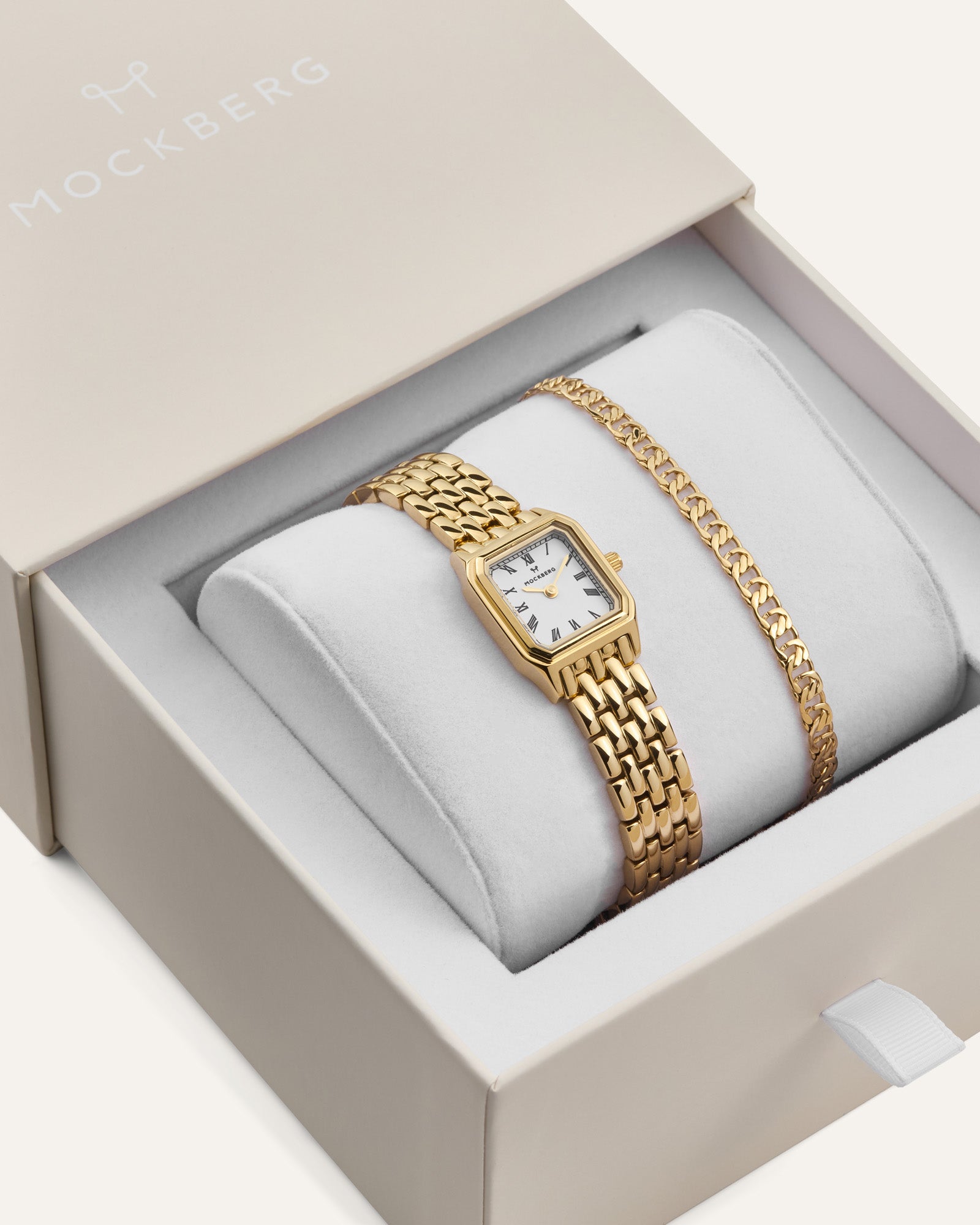 Utforska vår vackra combo box med vår bästsäljande Classic klocka och ett underbart armband. Denna kombination skapar den perfekta klassiska looken som passar både till vardags och fest. Både klockan och armbandet levereras i en elegant box, vilket gör detta till den ultimata presenten till någon du tycker om!