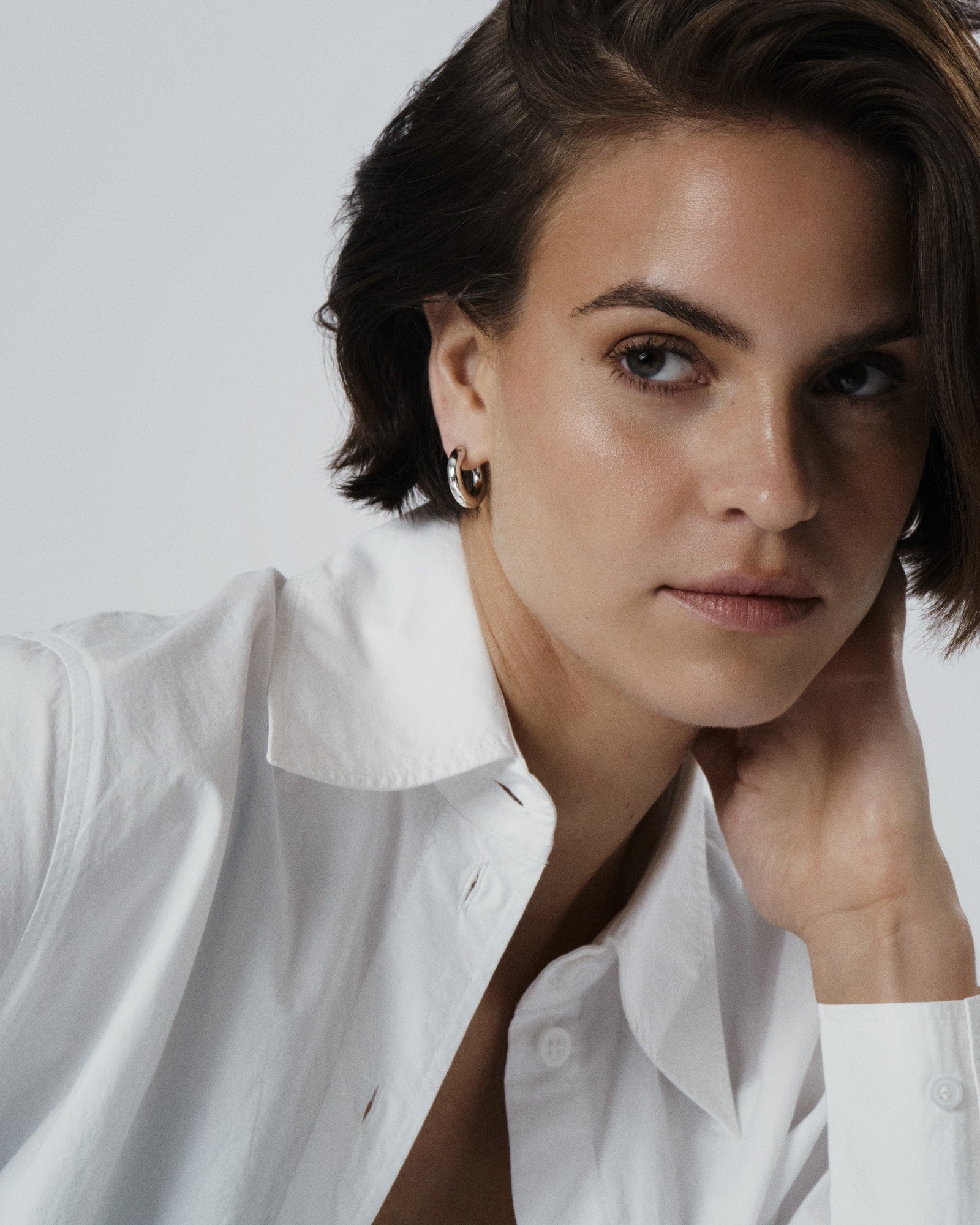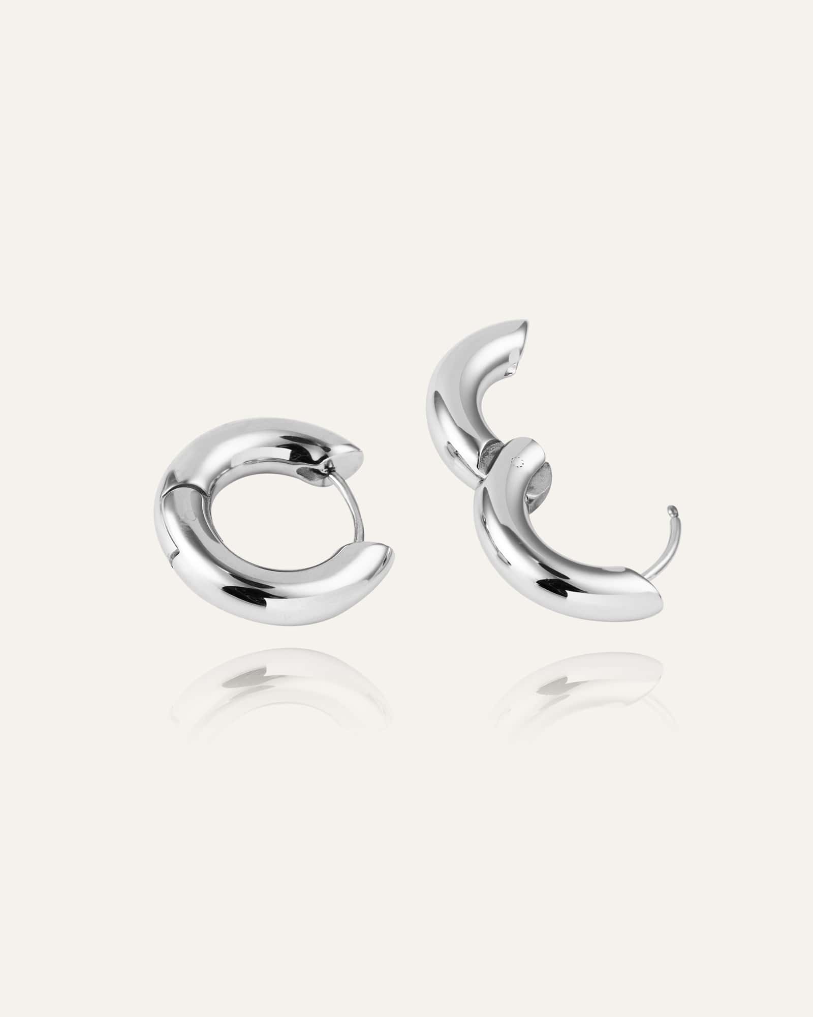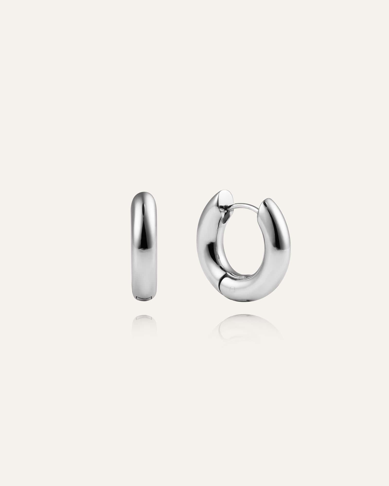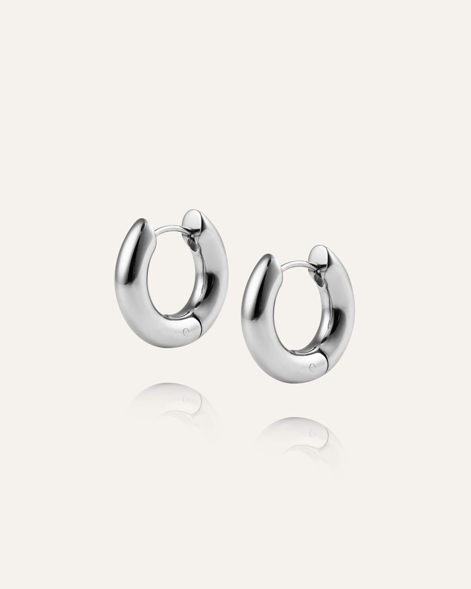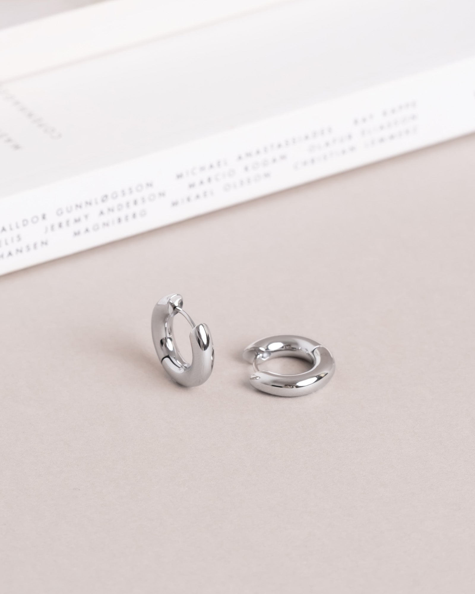Hoop-örhängen med mjuk, modern form, tillverkade i massivt rostfritt stål. Slitstarka och vattentåliga, vilket gör att de behåller sin färg och stil över tid. En kombination av elegans och hållbarhet för din vardagslook.