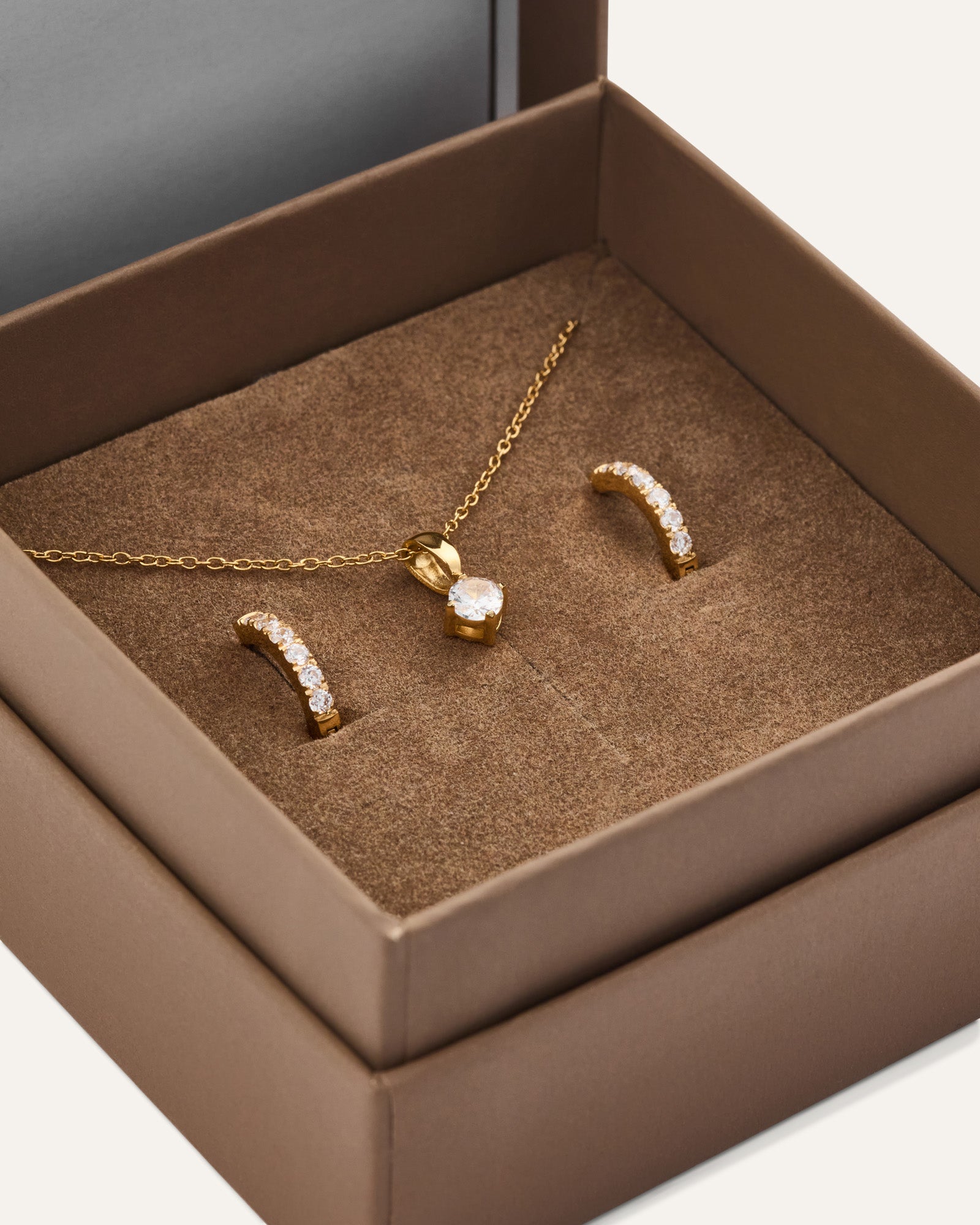 Ett stilrent set med halsband och våra bästsäljande örhängen. Designade för att ge en tidlös, klassisk look. Den perfekta presenten till någon du håller kär – eller till dig själv