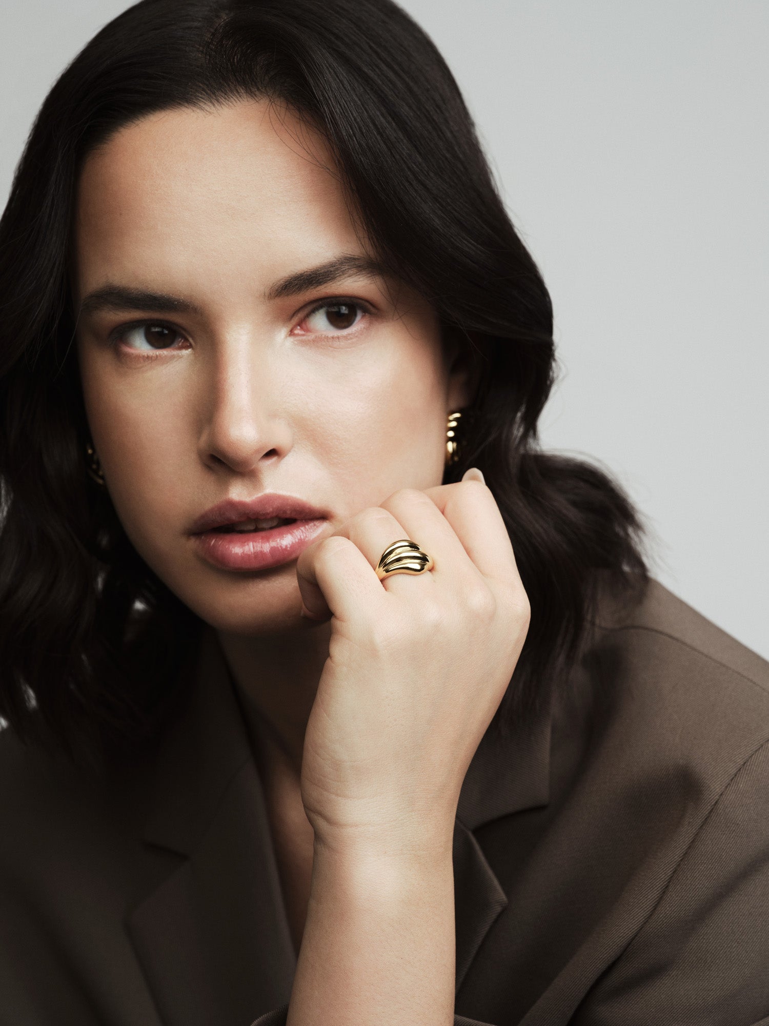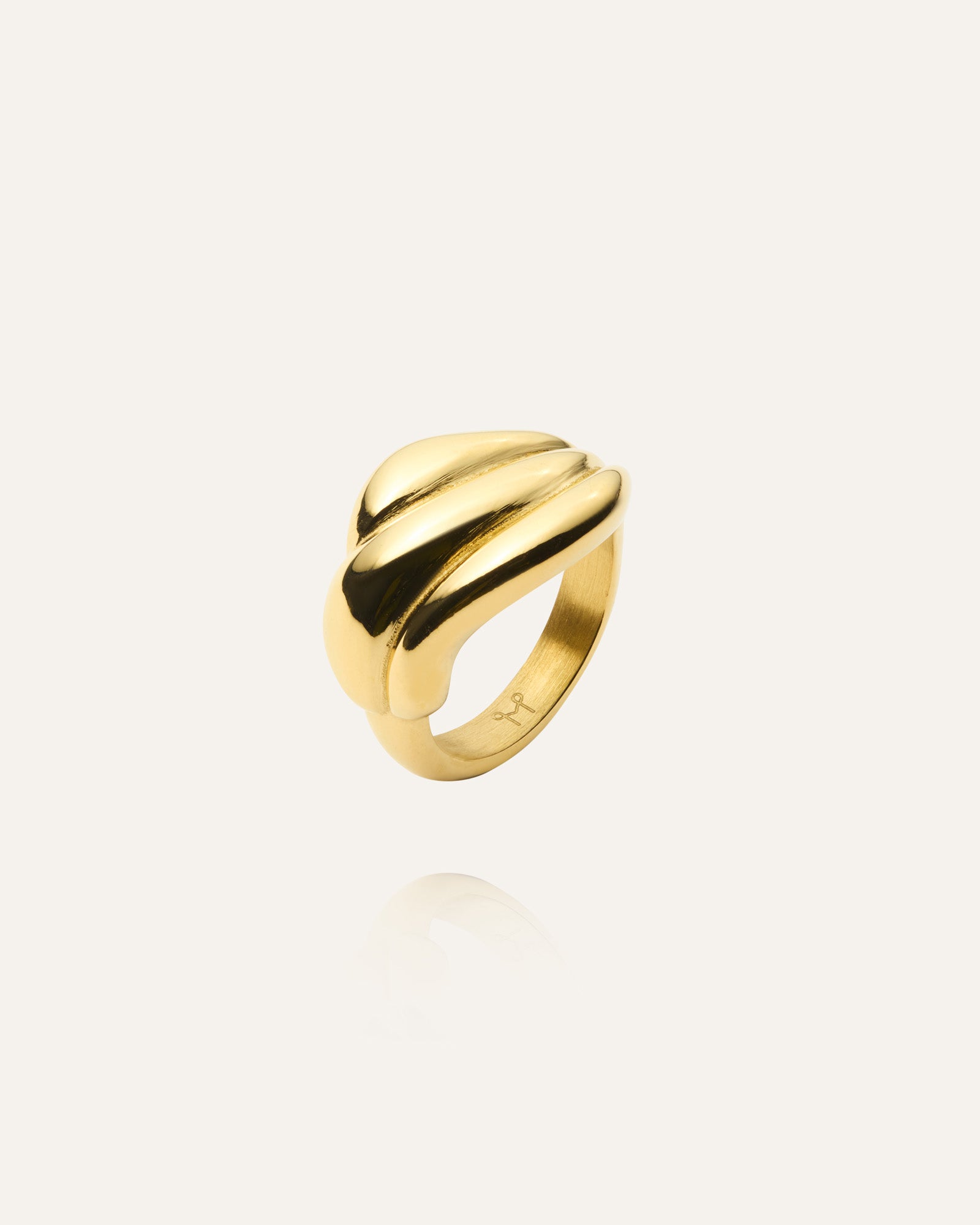 Med sin djärva och sofistikerade design skapar den en stark närvaro och adderar en vacker touch till din stil. Den är dessutom vattentålig, vilket gör den till en praktisk och lyxig del av din vardag. En ring som lyfter varje outfit och låter dig bära elegans med attityd.