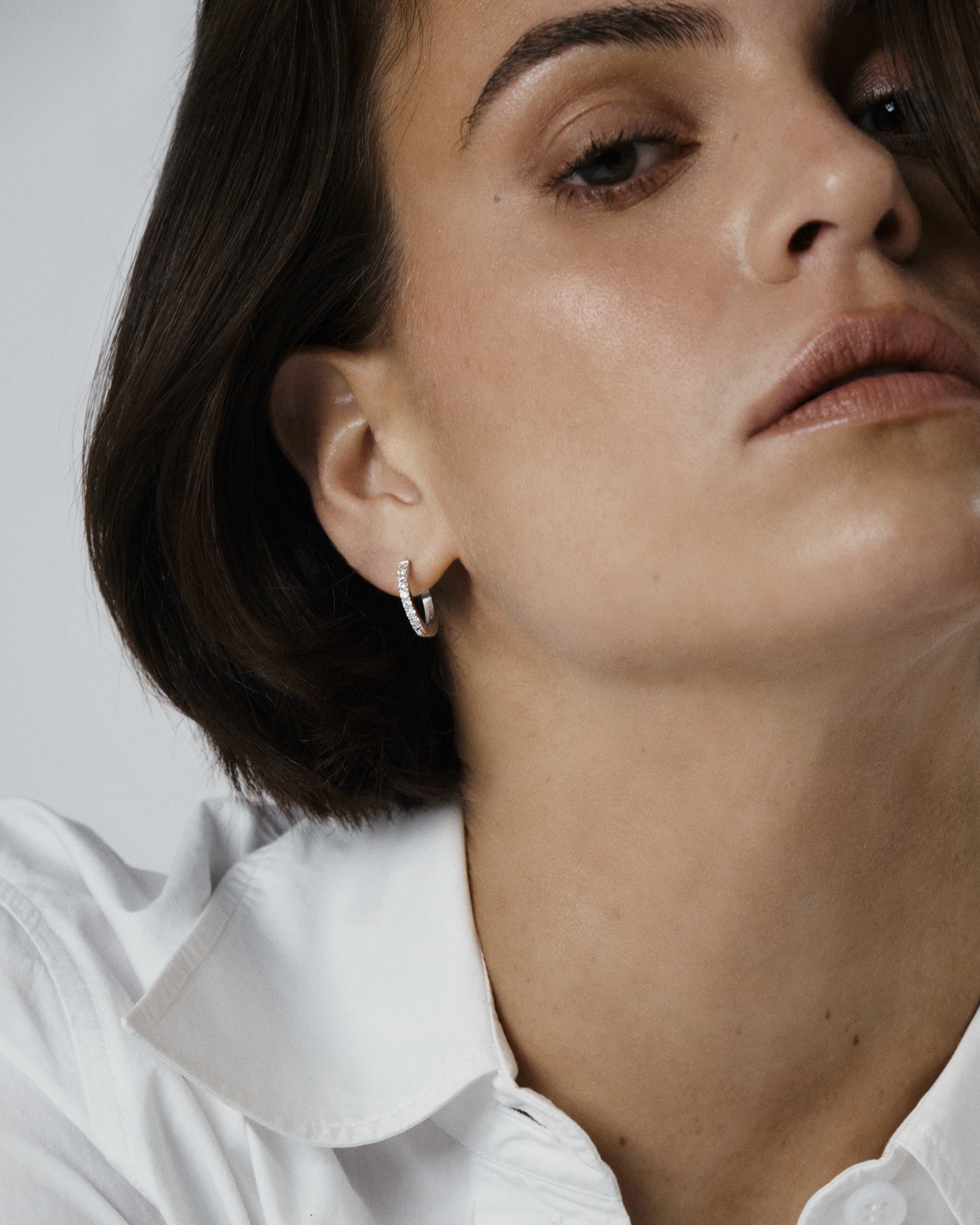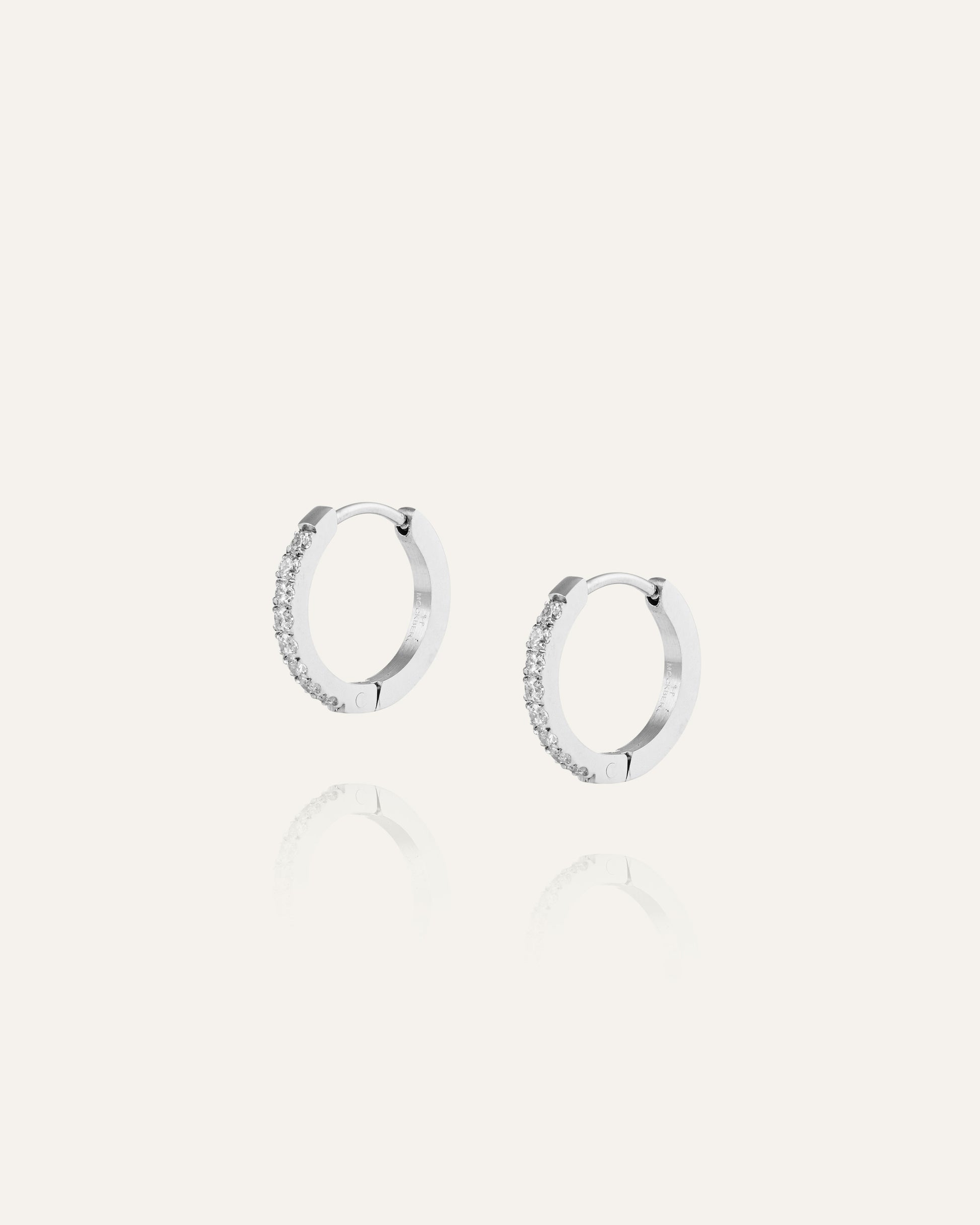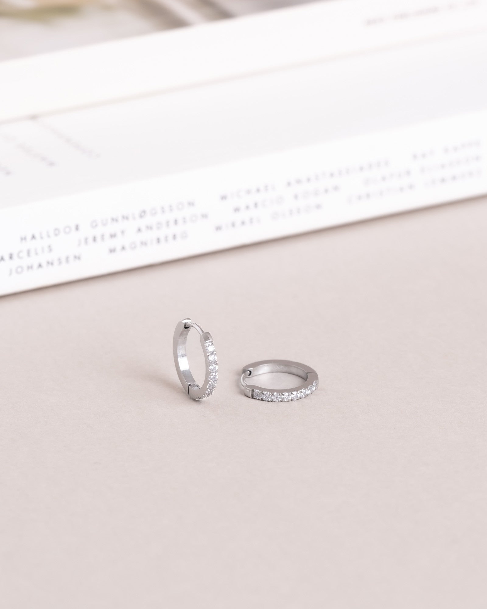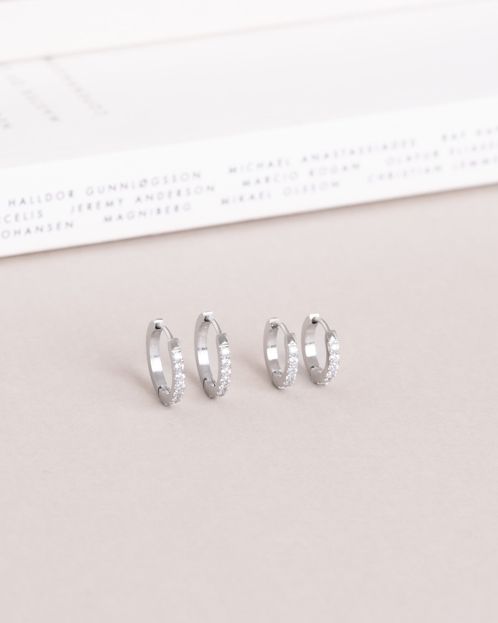 Tidlösa hoops med Cubic zirconia-stenar, tillverkade i massivt rostfritt stål. Slitstarka och vattentåliga, de bevarar sin färg och elegans över tid. Passar perfekt ihop med våra Classic Hoops.