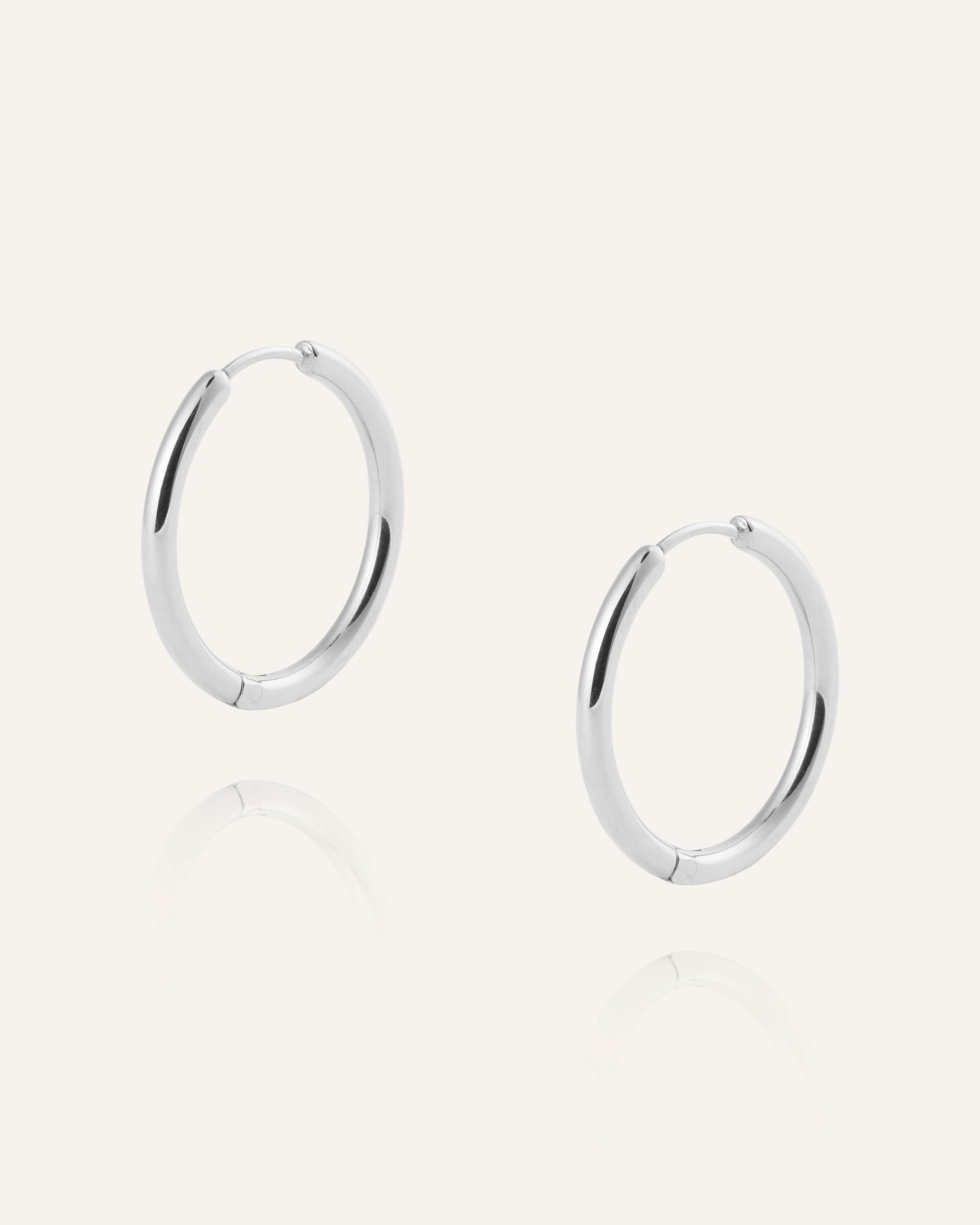 Slim Steel Hoops har en slank, elegant profil som fångar ljuset i en klar silverfärgad ton. Den avskalade designen ger en stilren finish som fungerar lika bra solo som i kombination med andra örhängen.