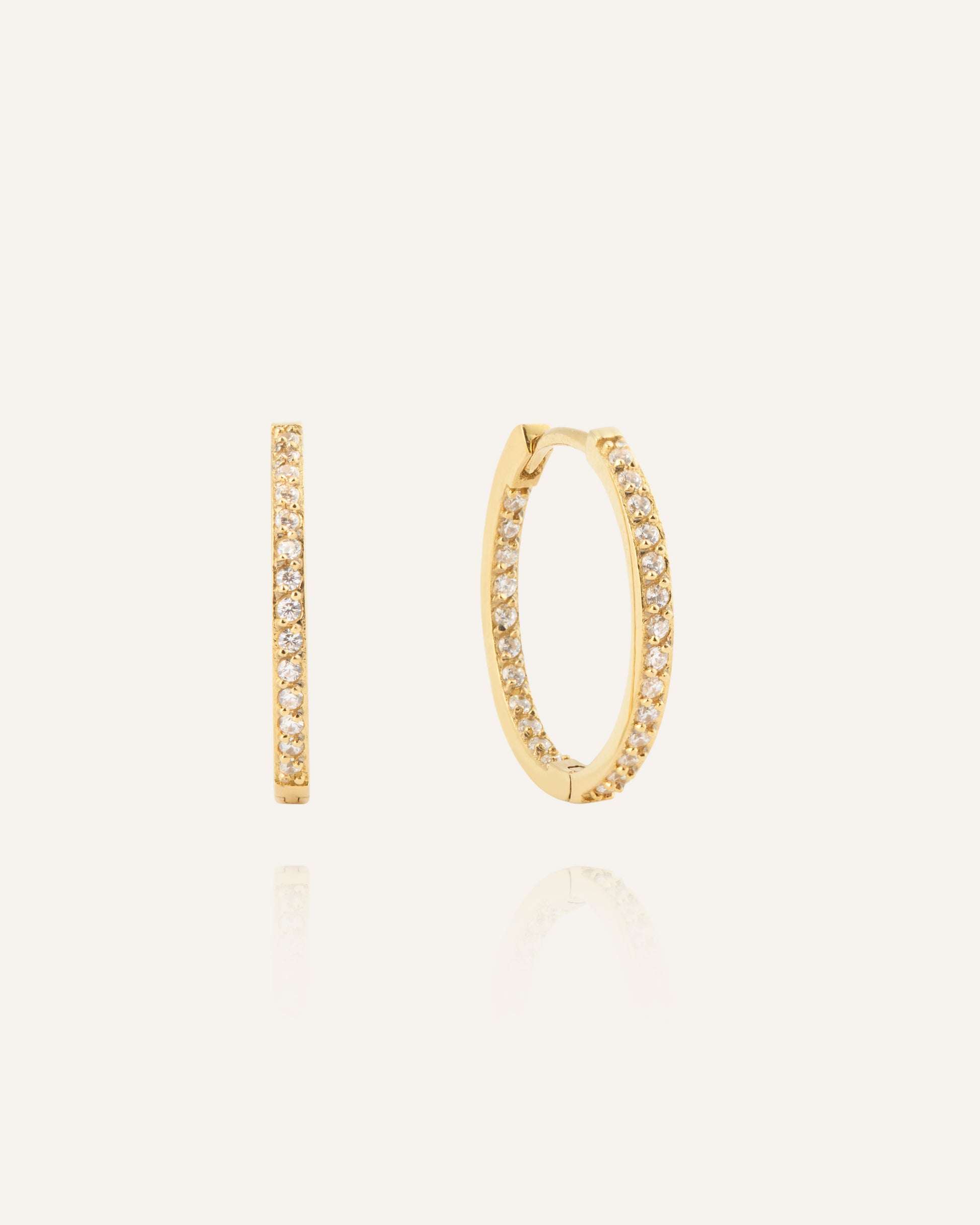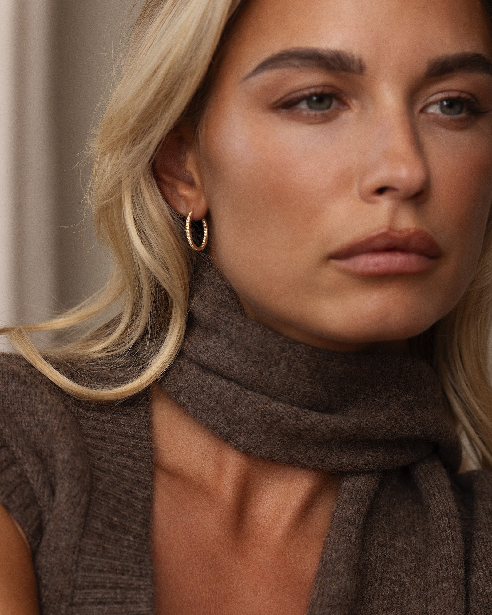 Sparkle Hoops glimmar mjukt i guldfärgad ton. De smala creolerna pryds av Cubic Zirconia som fångar ljuset vid varje rörelse. Lätta att bära, lätta att matcha – från vardag till kväll.