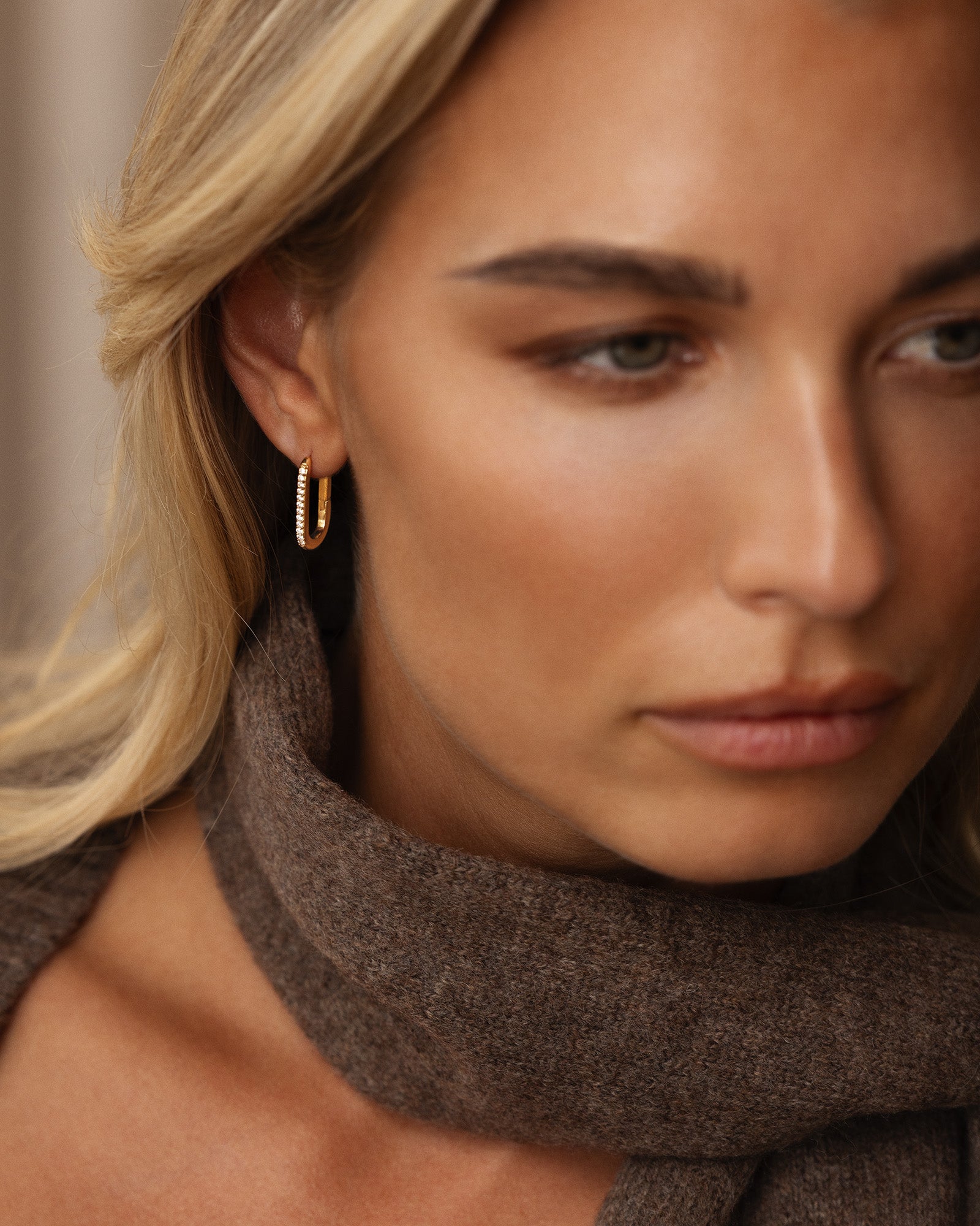 Sparkle U-Hoops glimmar i guldfärgad ton. Den slanka U-formen pryds av vita Cubic zirconia som fångar ljuset vid varje rörelse. Lätta att bära och lätta att matcha – från vardag till kväll.