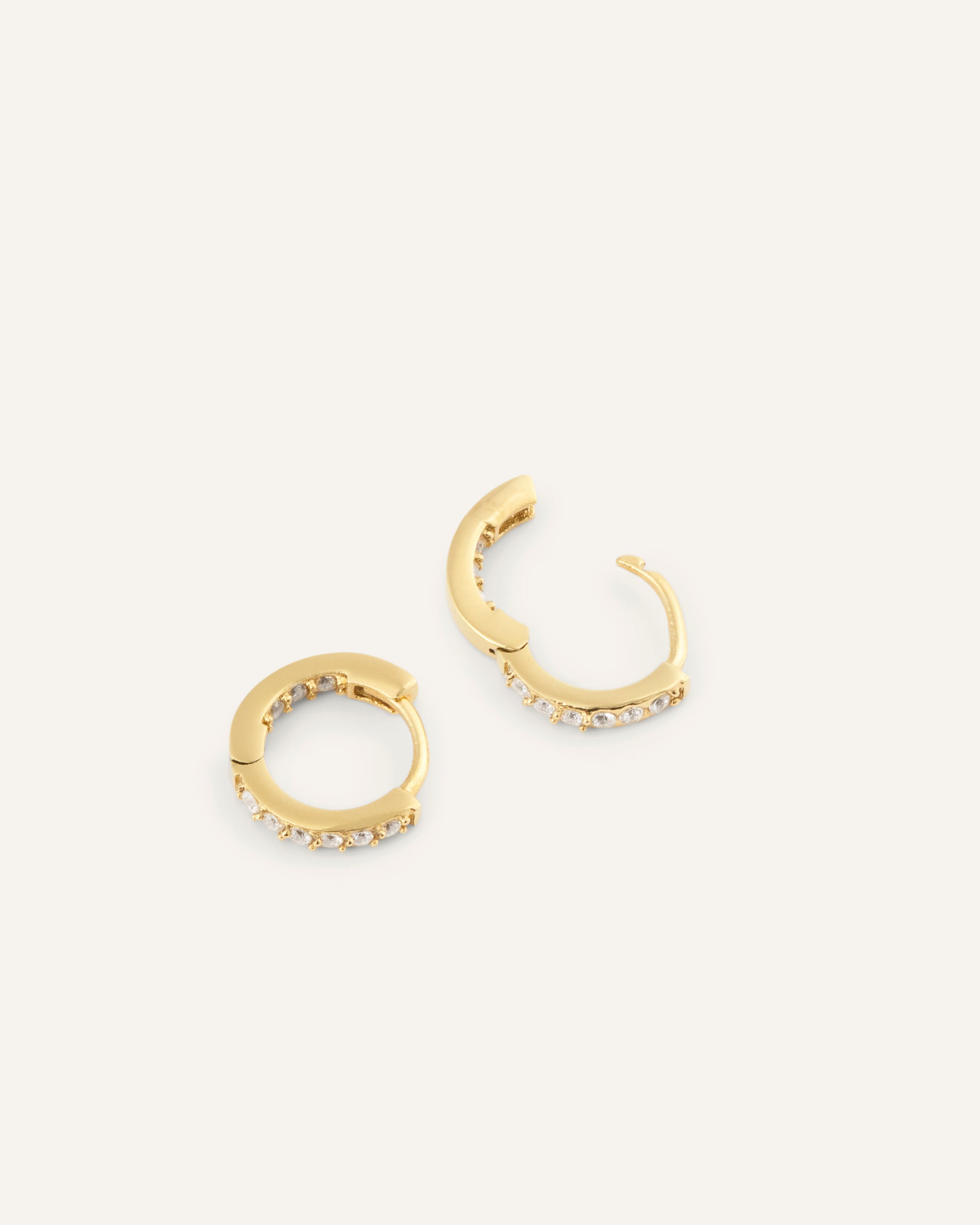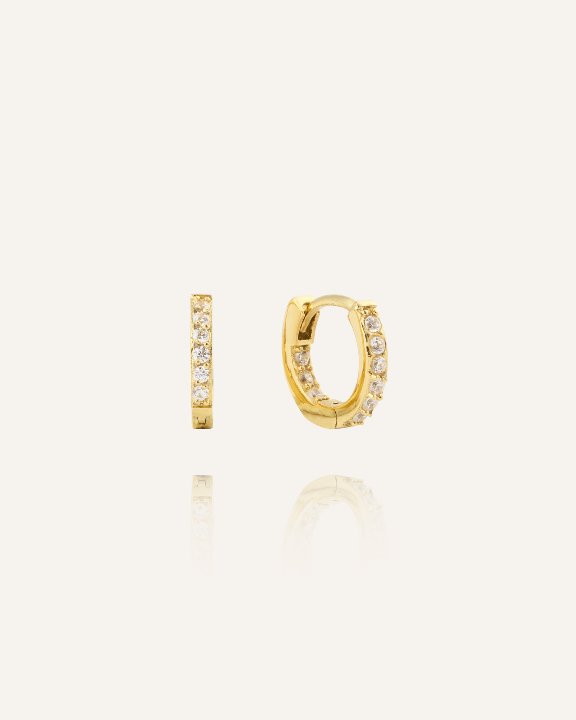 Sparkle Hoops glimmar mjukt i guldfärgad ton. De smala creolerna pryds av Cubic Zirconia som fångar ljuset vid varje rörelse. Lätta att bära, lätta att matcha – från vardag till kväll.