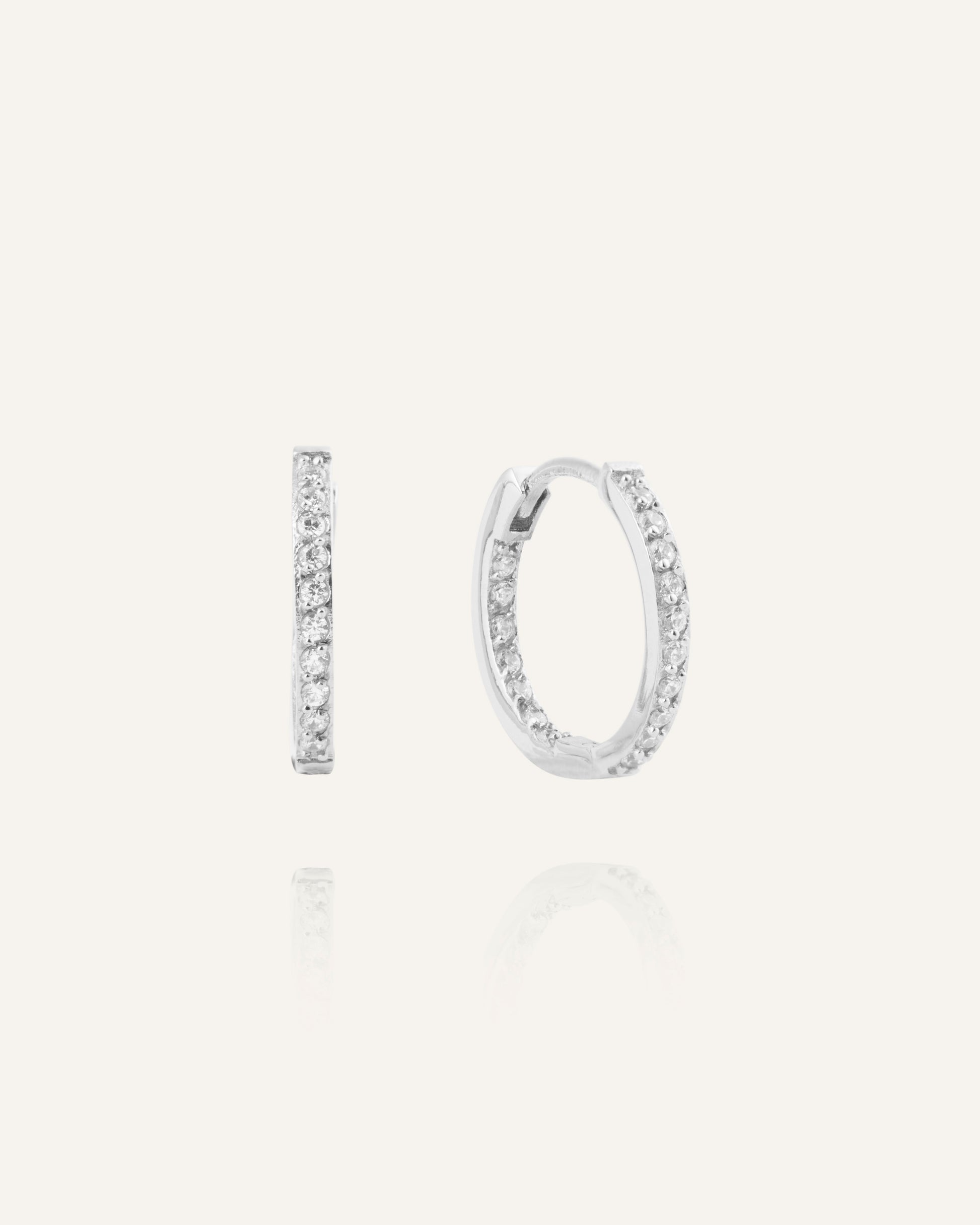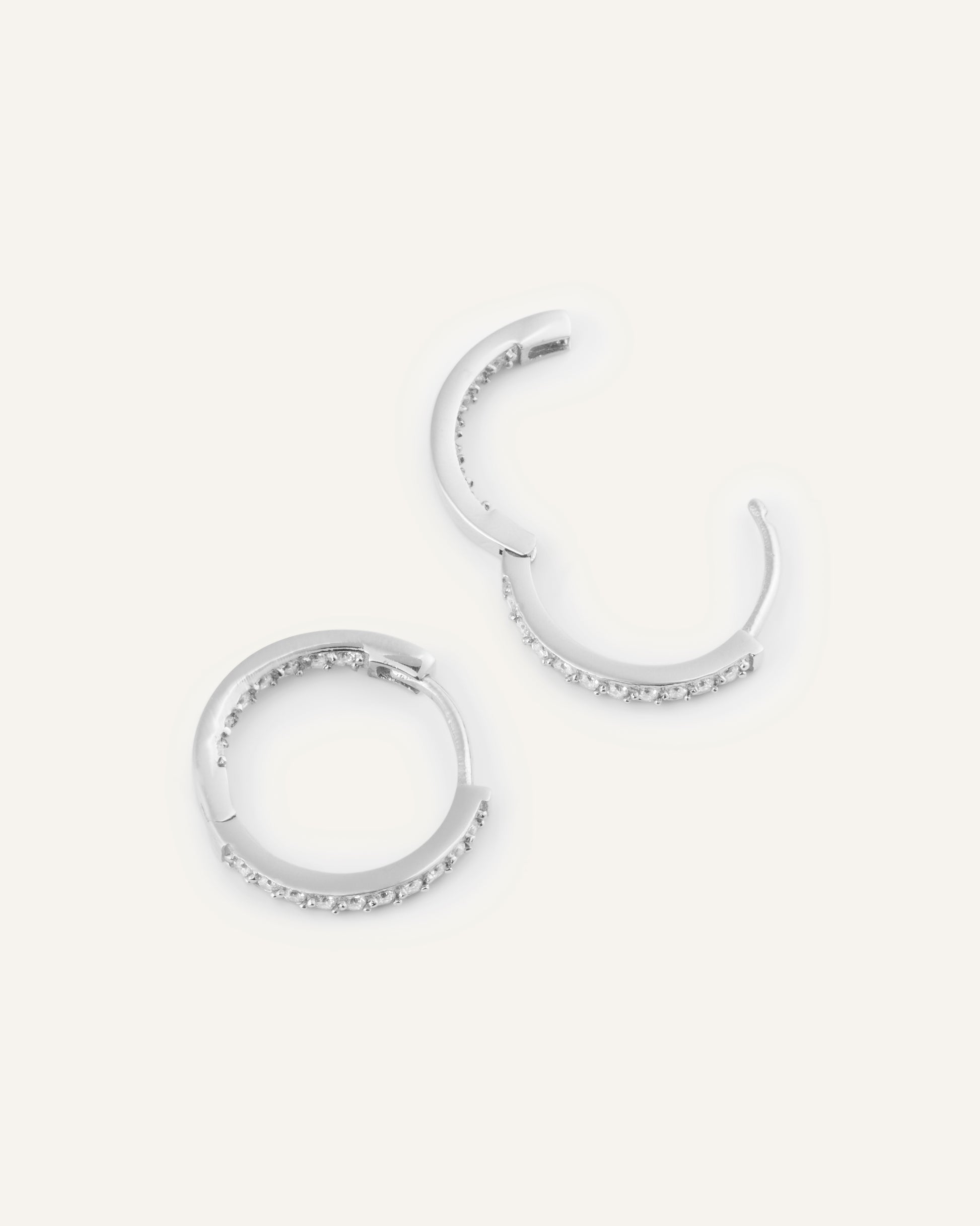 Sparkle Hoops glimmar mjukt i silverfärgad ton. De smala creolerna pryds av Cubic Zirconia som fångar ljuset vid varje rörelse. Lätta att bära, lätta att matcha – från vardag till kväll.