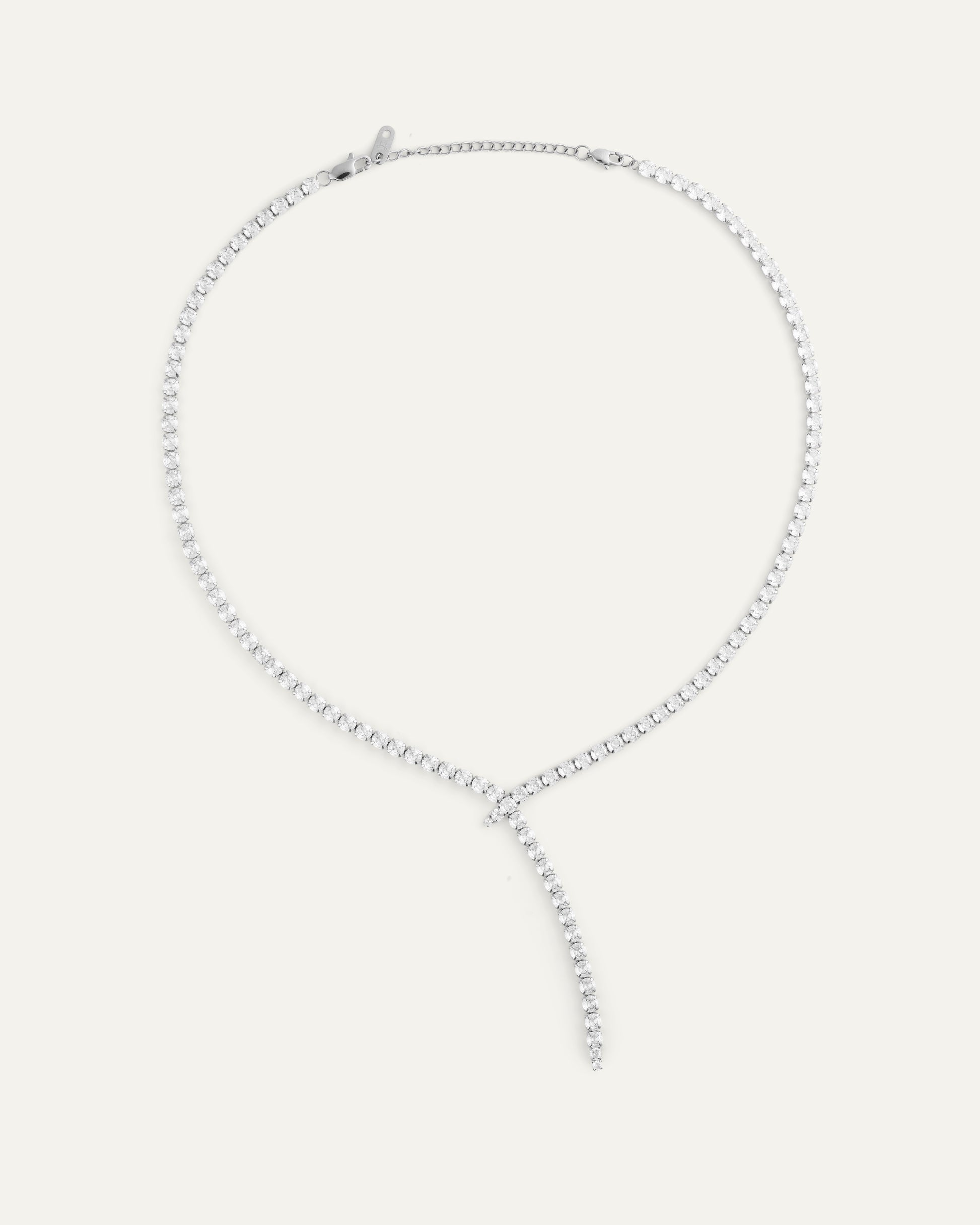 Sval lyster och tydlig form. Alora i silverfärg ramar in halsen med en rad vita cubic zirconia som ger ett klart, stilla skimmer.