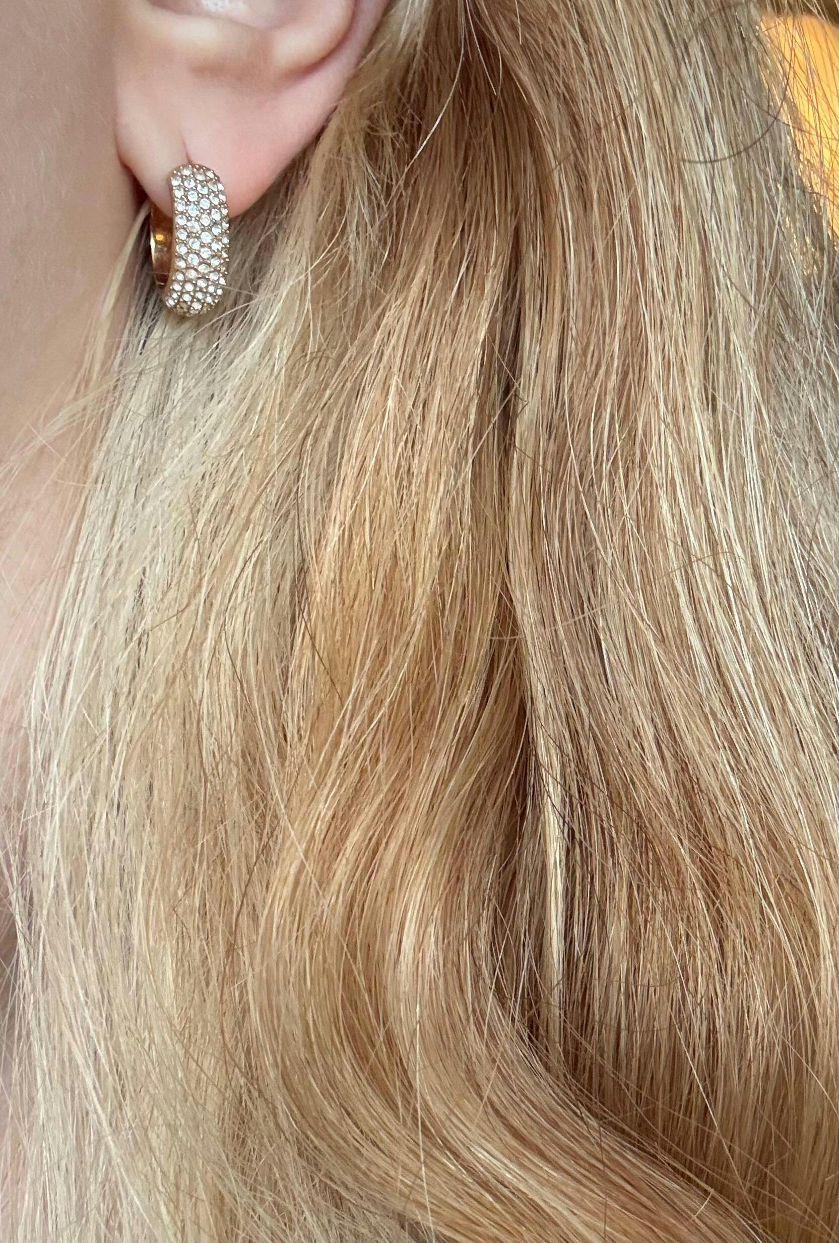 Eleganta hoops dekorerade med gnistrande Cubic zirconia-stenar. Tillverkade i massivt rostfritt stål med 18K guld PVD-plätering, vilket gör dem slitstarka och vattentåliga. Behåller sin färg och lyster över tid.