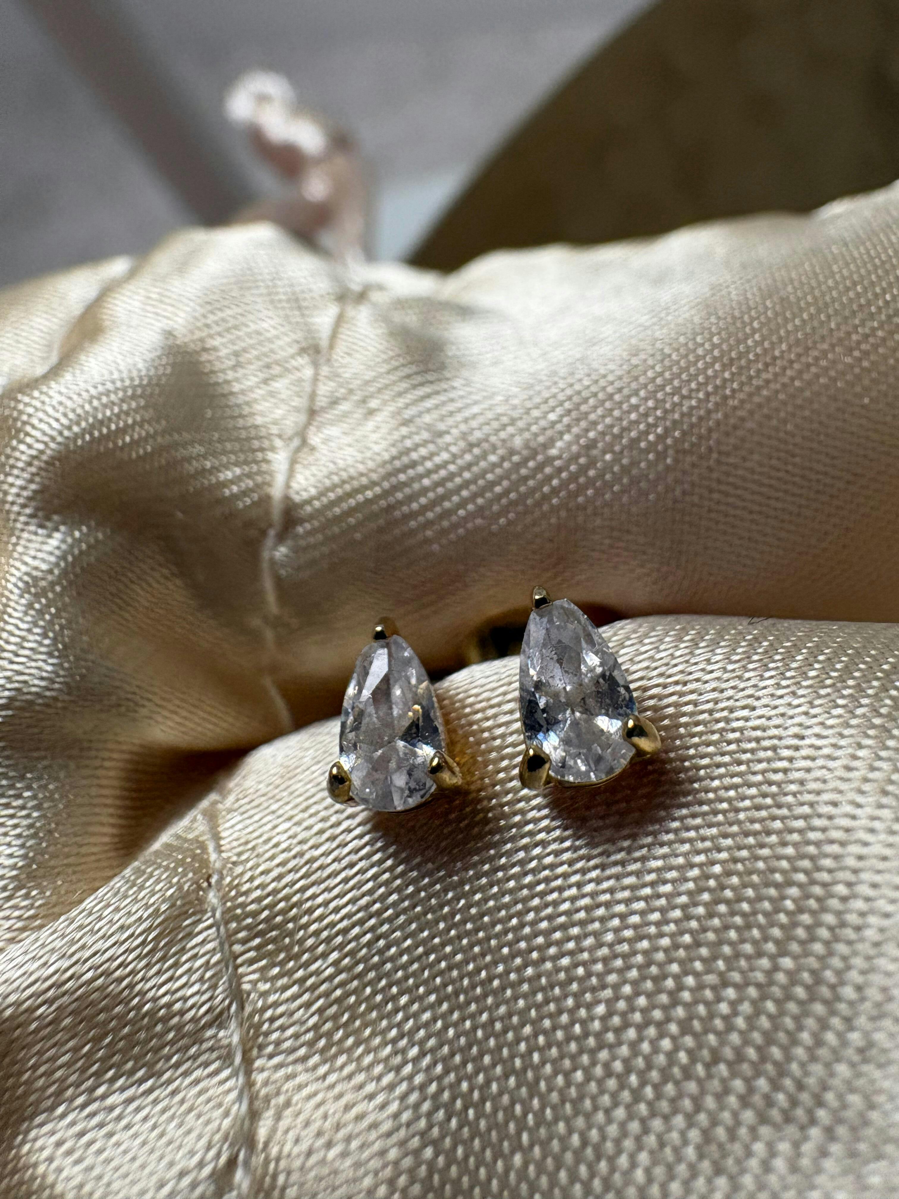 Tidlös elegans i en minimalistisk design. Belle White Studs är diskreta, gnistrande örhängen med vita droppformade stenar. Tillverkade i rostfritt stål med 18K guld PVD-plätering är de slitstarka och vattentåliga, vilket gör att de behåller sin färg och stil över tid.