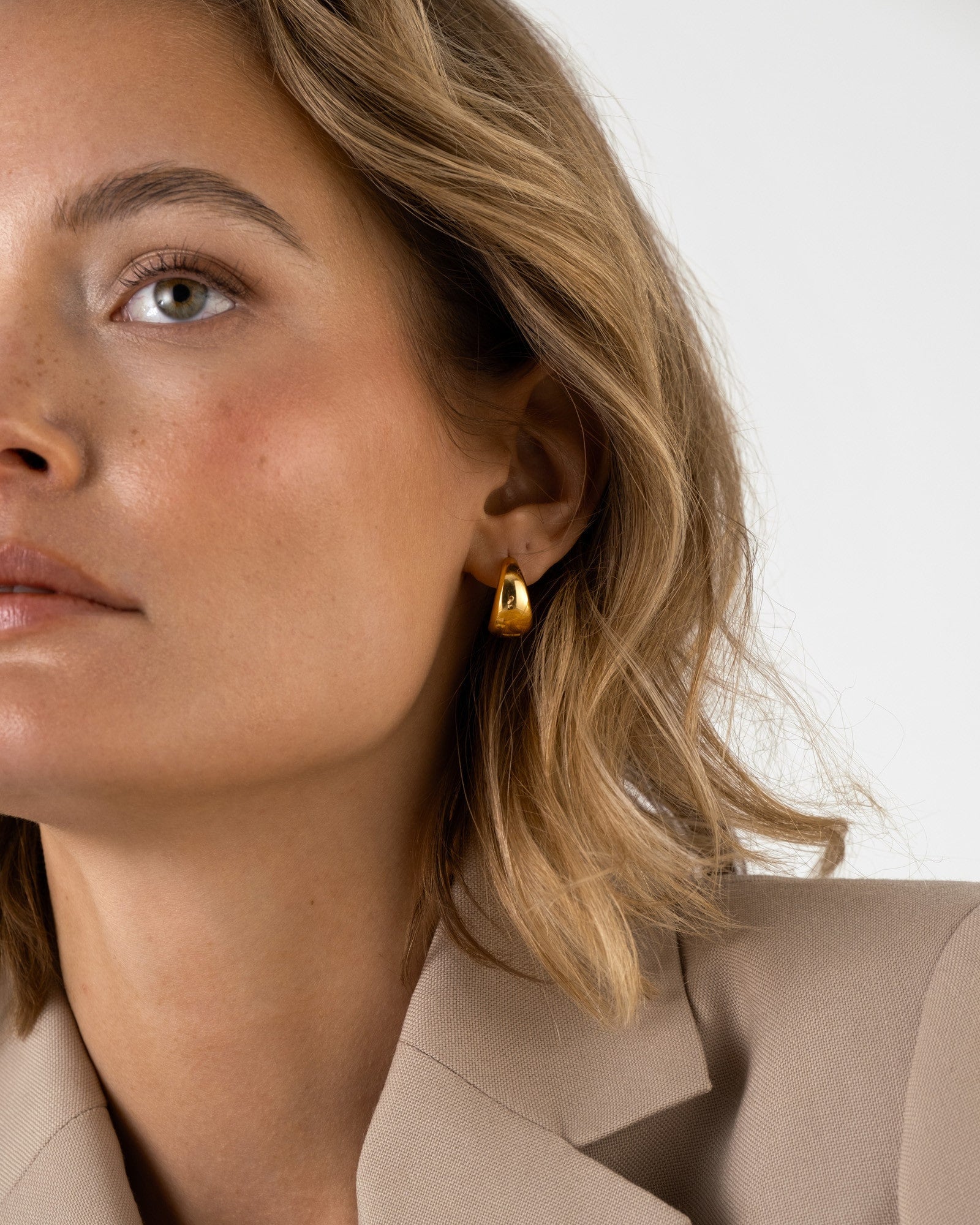 Hoop-örhängen i en hållbar design, tillverkade i massivt rostfritt stål med 18K guld PVD-plätering. Vattentåliga och slitstarka, de behåller både färg och elegans över tid.