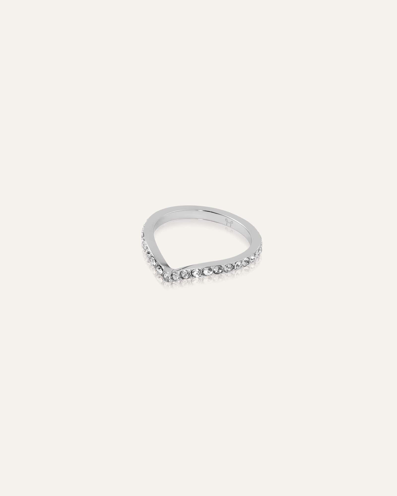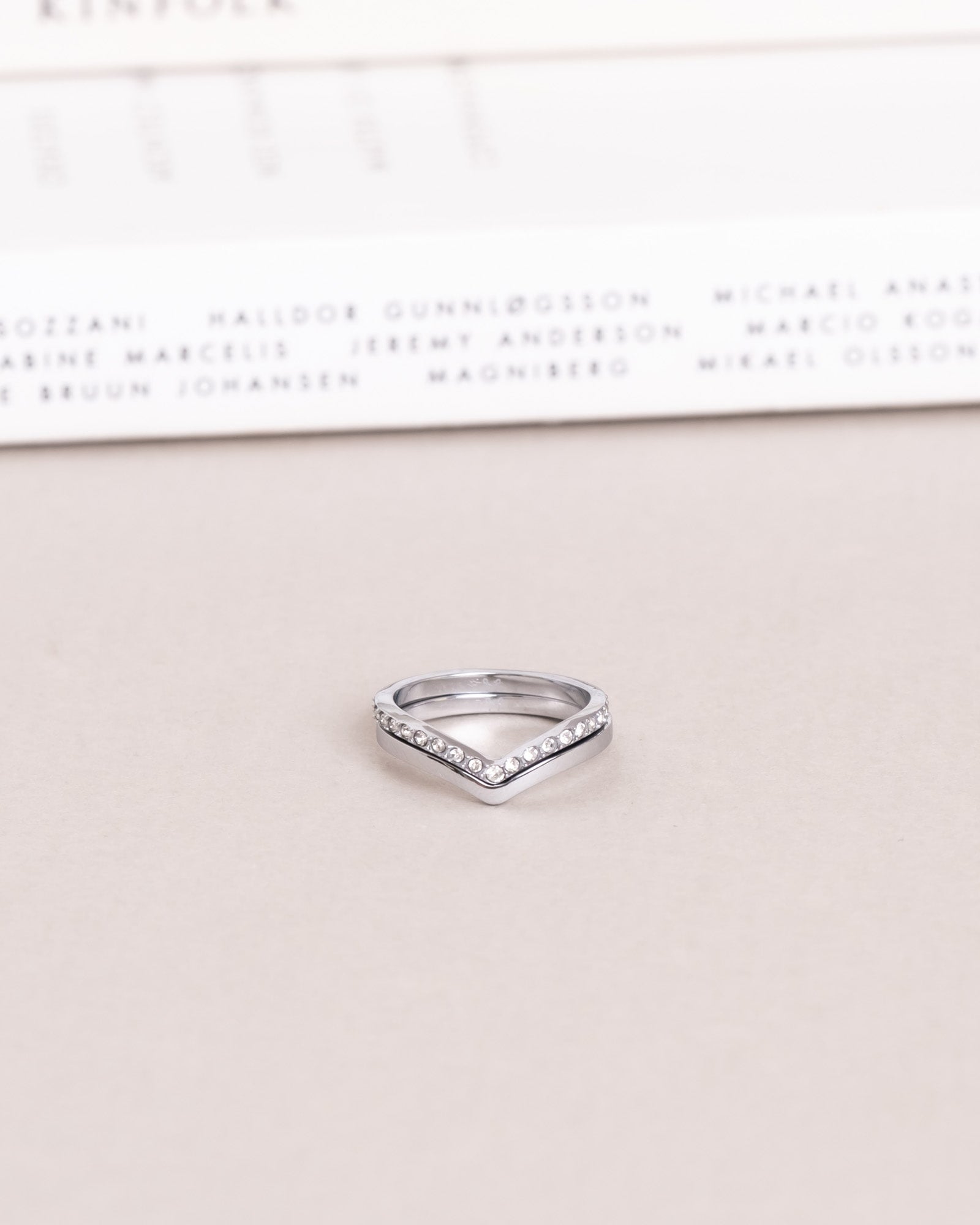 Brilliant Ring är en nytolkning av Honest Ring – smal, stilren och V-formad, dekorerad med små gnistrande stenar. Tillverkad i massivt rostfritt stål med en slitstark PVD-plätering, vilket gör den vattentålig och hållbar. Bär den varje dag – bada, duscha och träna utan att oroa dig för att den tappar färg.
