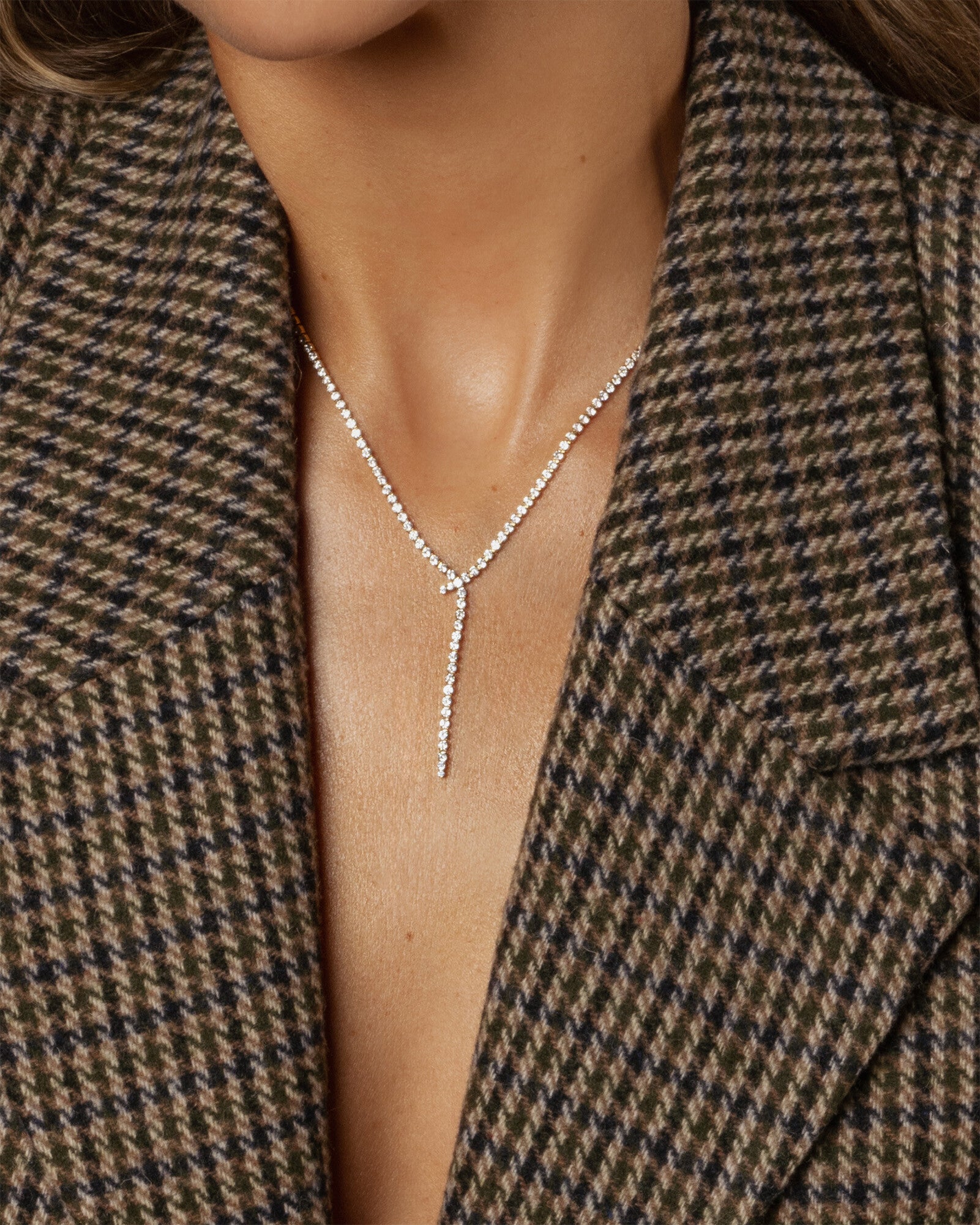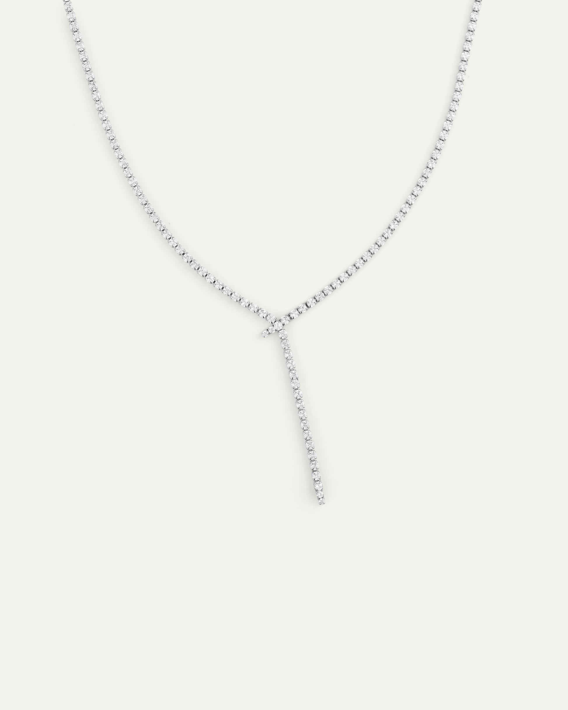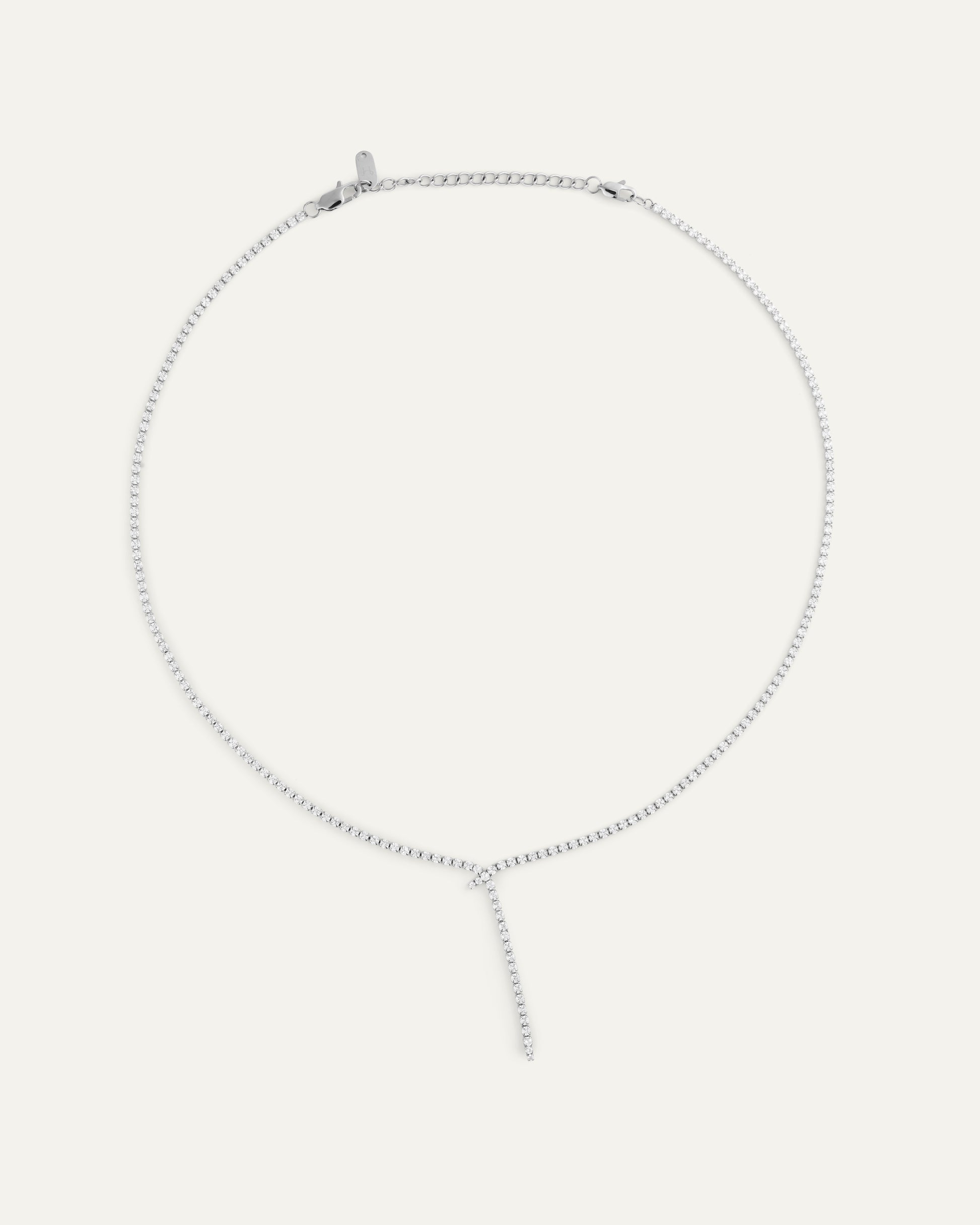 Sval lyster med rad av vita stenar som fångar ljuset. Eve i silverfärg ramar in halsen med en ren, tidlös känsla – lätt att bära, lätt att tycka om. Justerbar längd för en bekväm passform.
