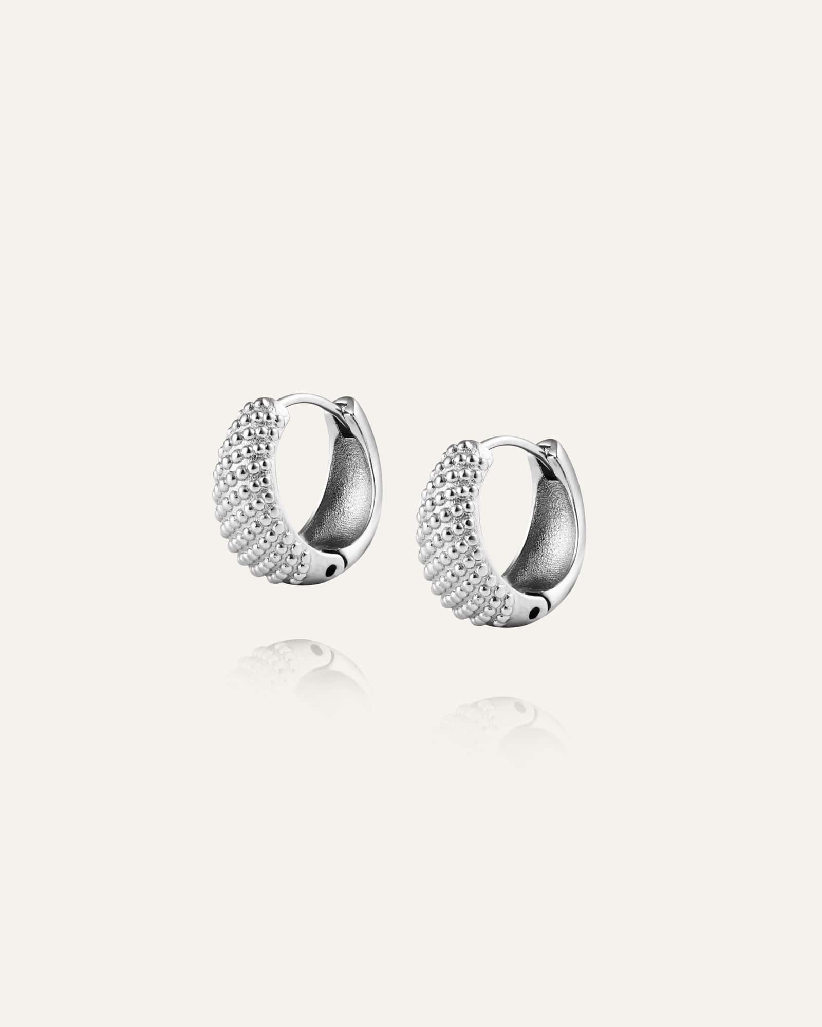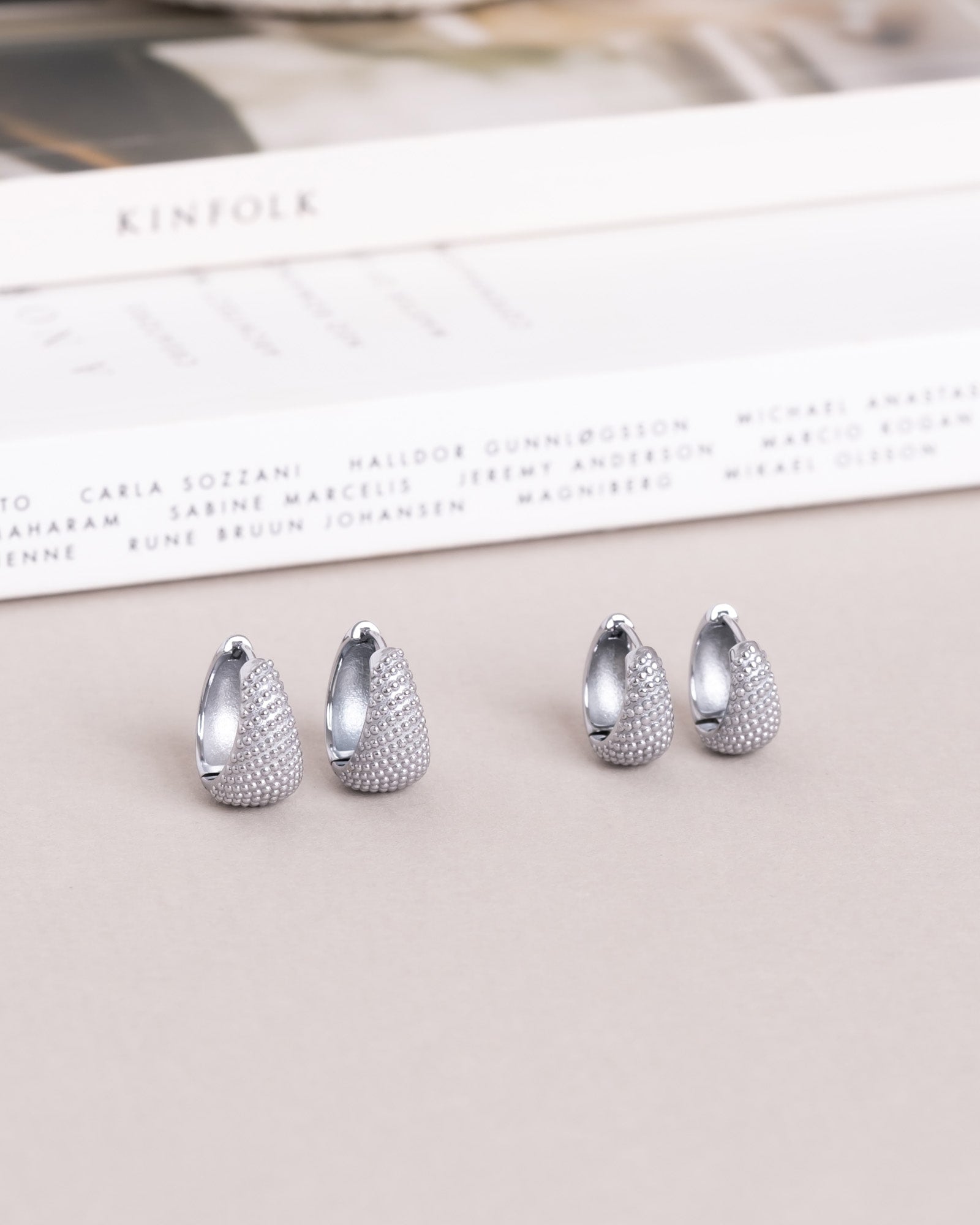 Honey Hoops har en unik design med ett strukturerat mönster som skiljer sig från de klassiska Bold Hoops. Tillverkade i massivt rostfritt stål är de slitstarka och vattentåliga.