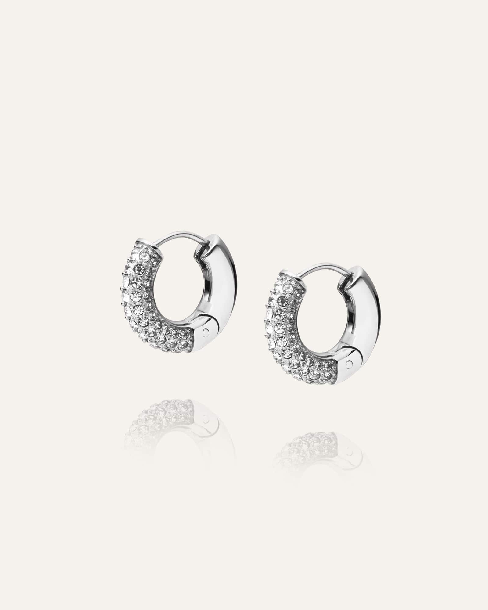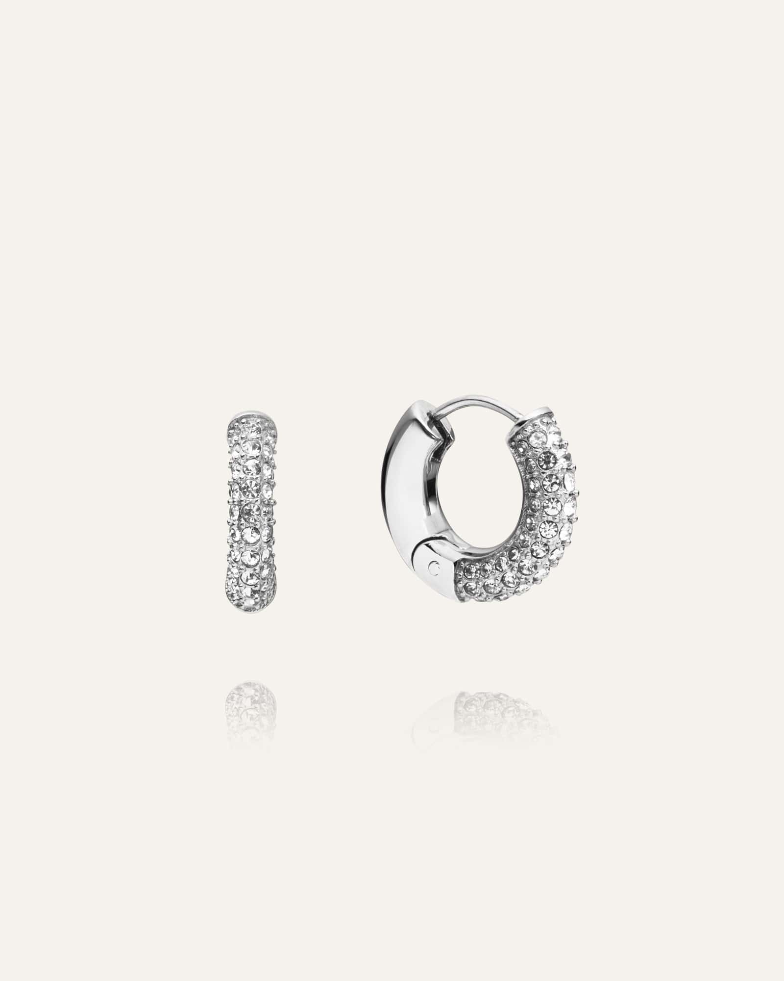 Tillverkade i rostfritt stål och dekorerade med Cubic zirconia-stenar, är de både slitstarka och vattentåliga. En tidlös design skapad för att bäras varje dag utan att förlora sin glans.