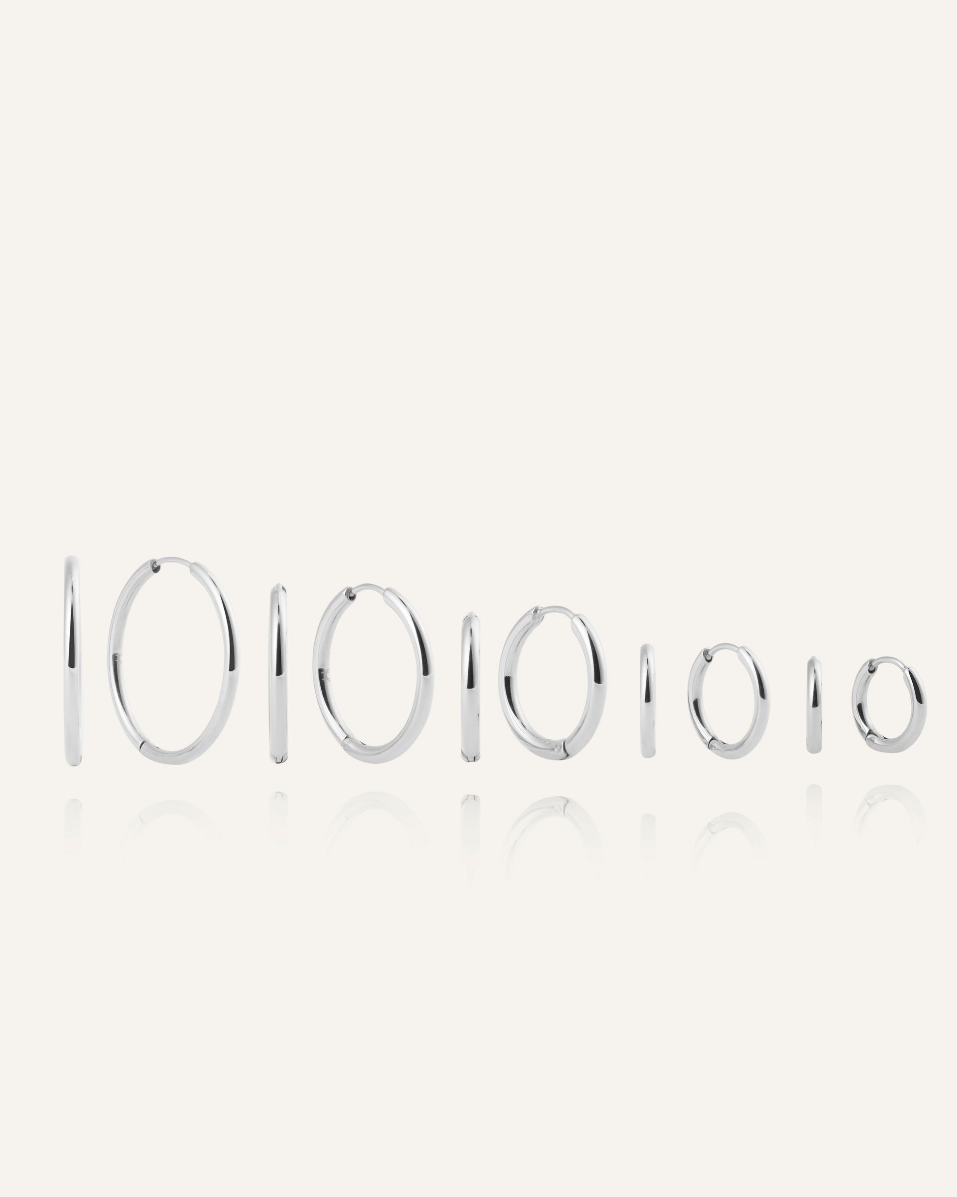 Slim Steel Hoops har en slank, elegant profil som fångar ljuset i en klar silverfärgad ton. Den avskalade designen ger en stilren finish som fungerar lika bra solo som i kombination med andra örhängen.