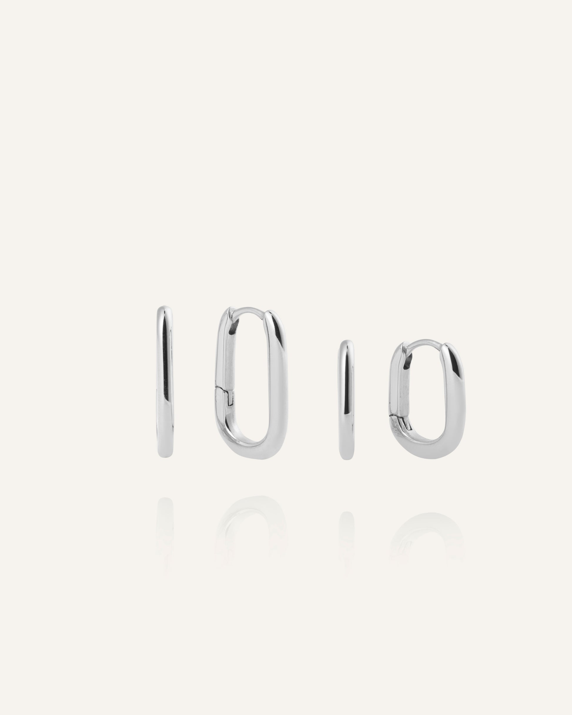Slim Steel U-Hoops ger en klar, silverfärgad lyster. Den avskalade U-formen skapar en stilren finish som lyfter både enkla basplagg och mer uppklädda looks.