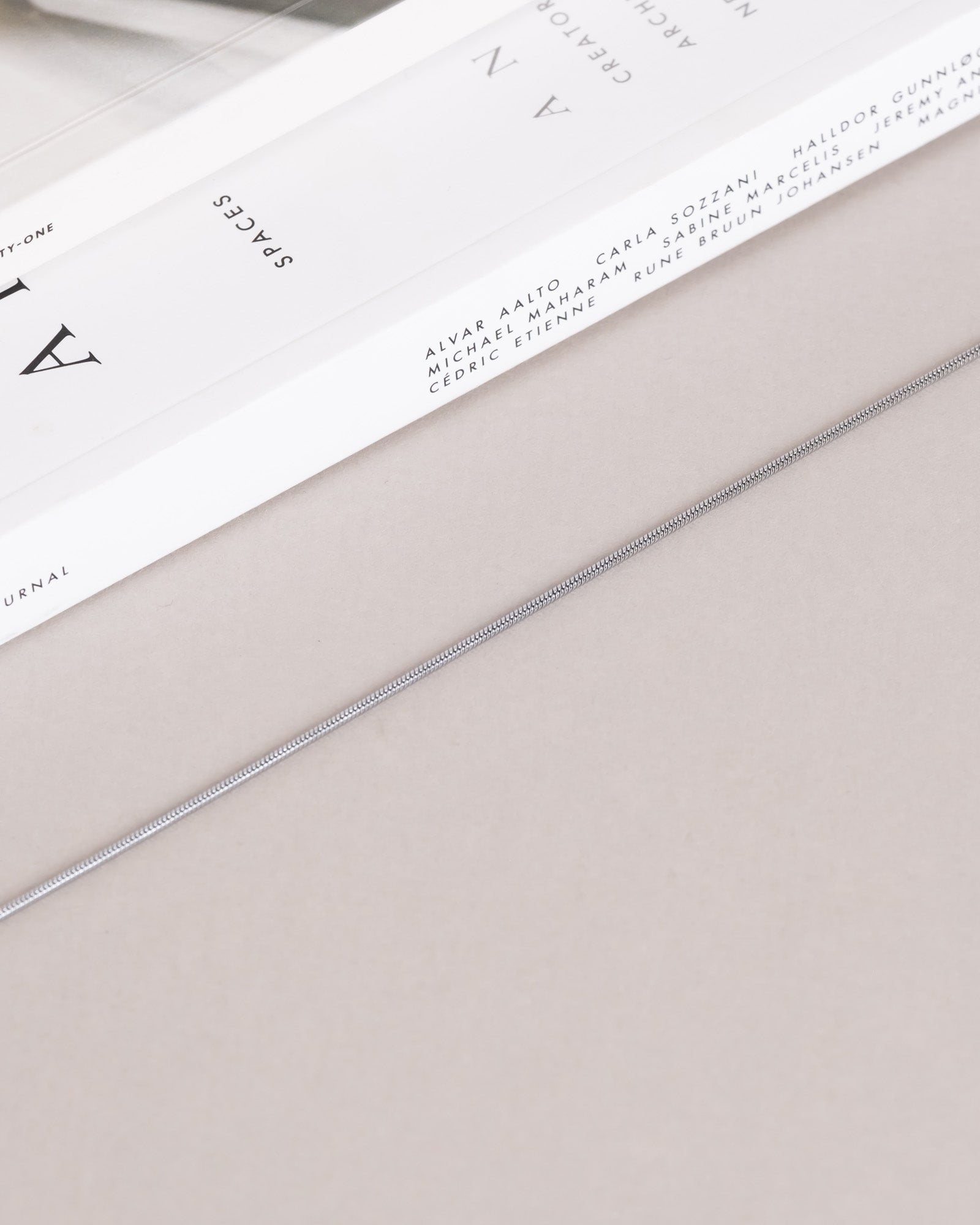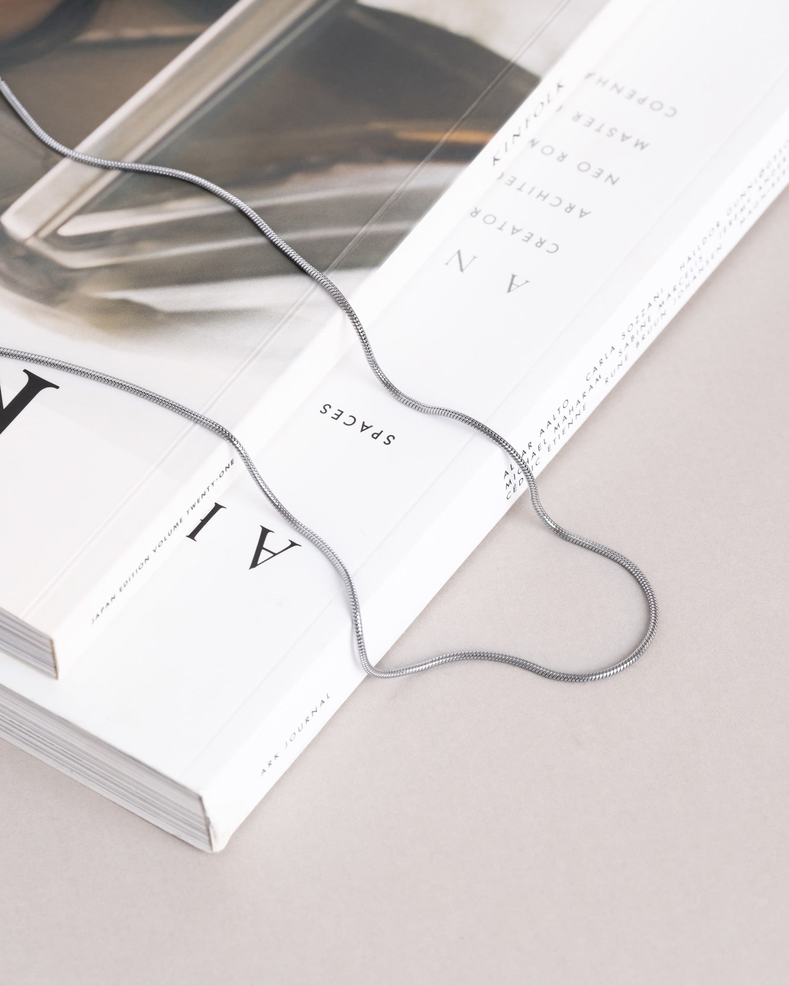 Ett klassiskt halsband med en mjuk och följsam design. Tillverkat i rostfritt stål med PVD-plätering är det både slitstarkt och vattentåligt, vilket gör att det behåller sin färg och lyster över tid. Förlängningskedjan kan enkelt tas av för en anpassad passform.