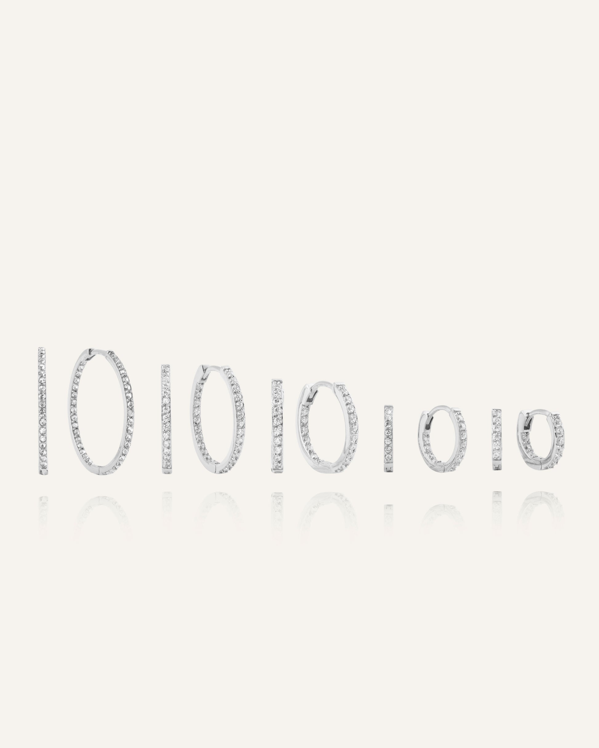 Sparkle Hoops glimmar mjukt i silverfärgad ton. De smala creolerna pryds av Cubic Zirconia som fångar ljuset vid varje rörelse. Lätta att bära, lätta att matcha – från vardag till kväll.