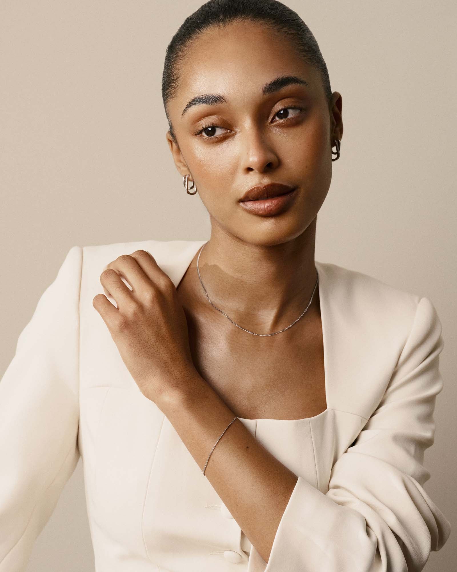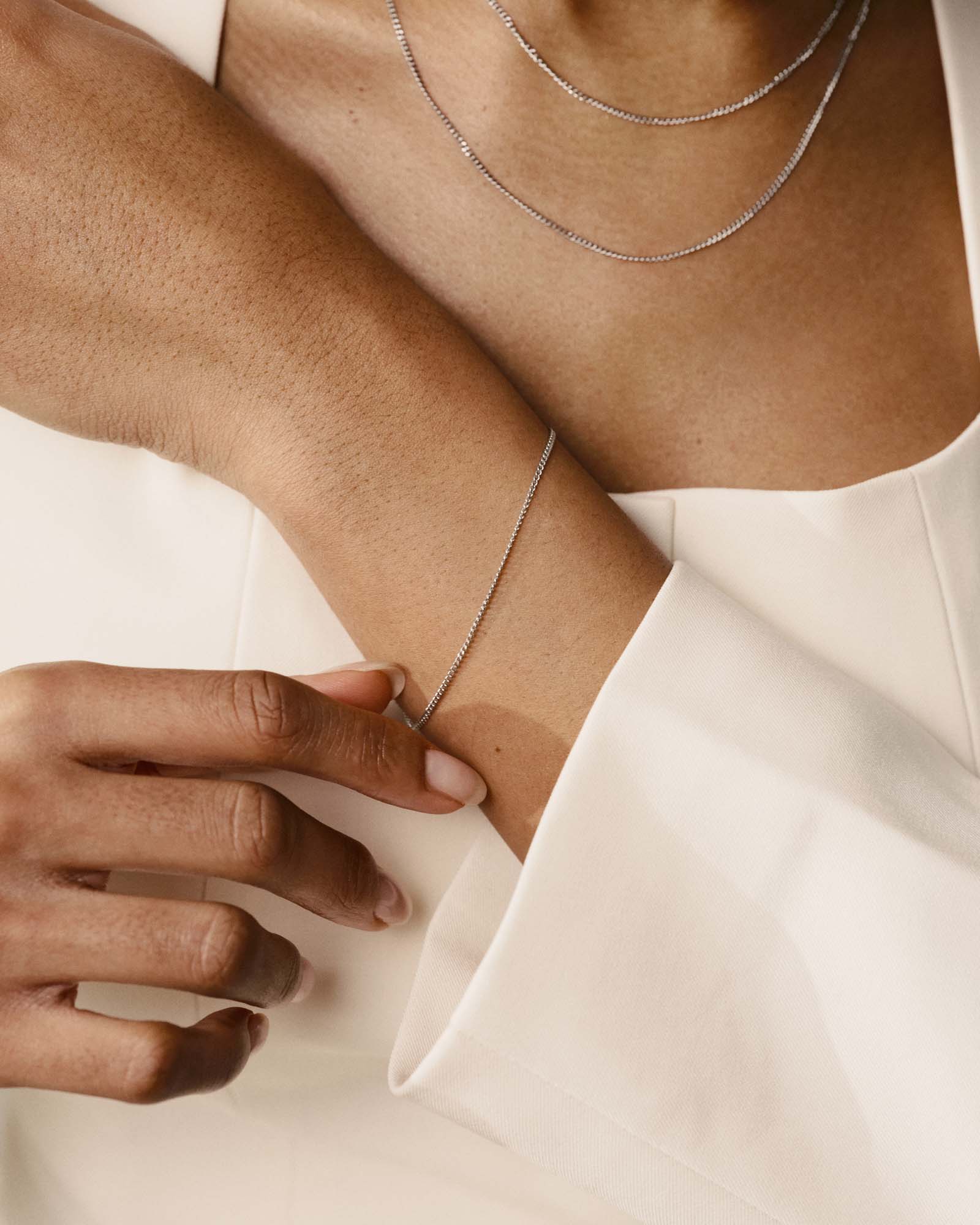 Tunt och elegant, men med precis rätt tyngd mot handleden. Det här tunna pansarkedjearmbandet känns som en andra hud. Bär det ensamt för en minimalistisk känsla, eller kombinera det med fler armband för en mer personlig look.