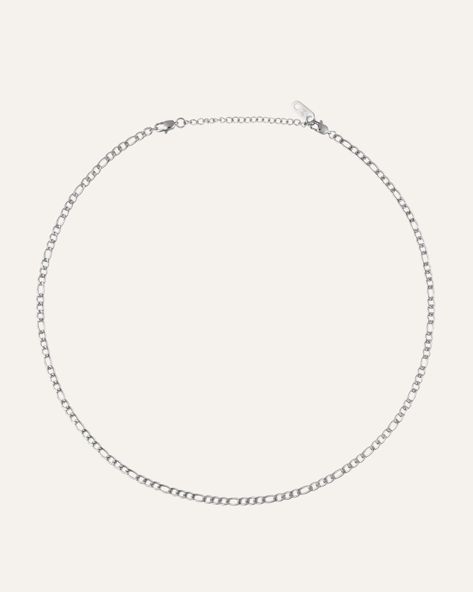 Figaro Necklace är ett halsband med en klassisk länkdesign. Matcha med Figaro Bracelet för en stilren helhet. Tillverkat i rostfritt stål med PVD-plätering är det både slitstarkt och vattentåligt, vilket gör att det behåller sin färg och glans över tid. Förlängningskedjan kan enkelt tas av för en anpassad passform.