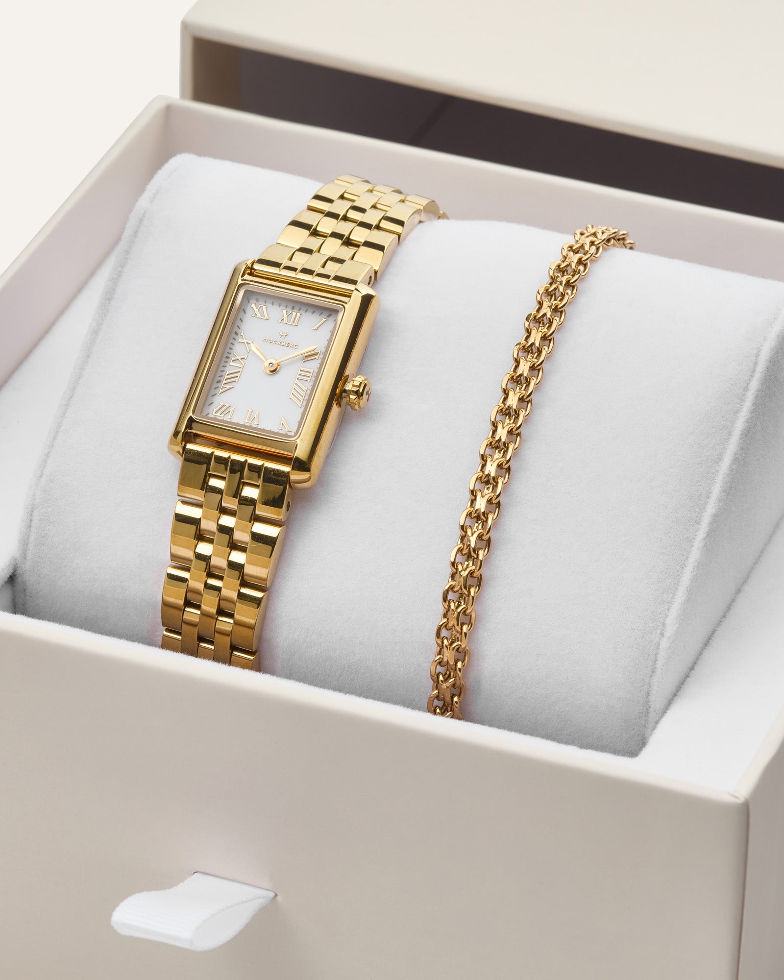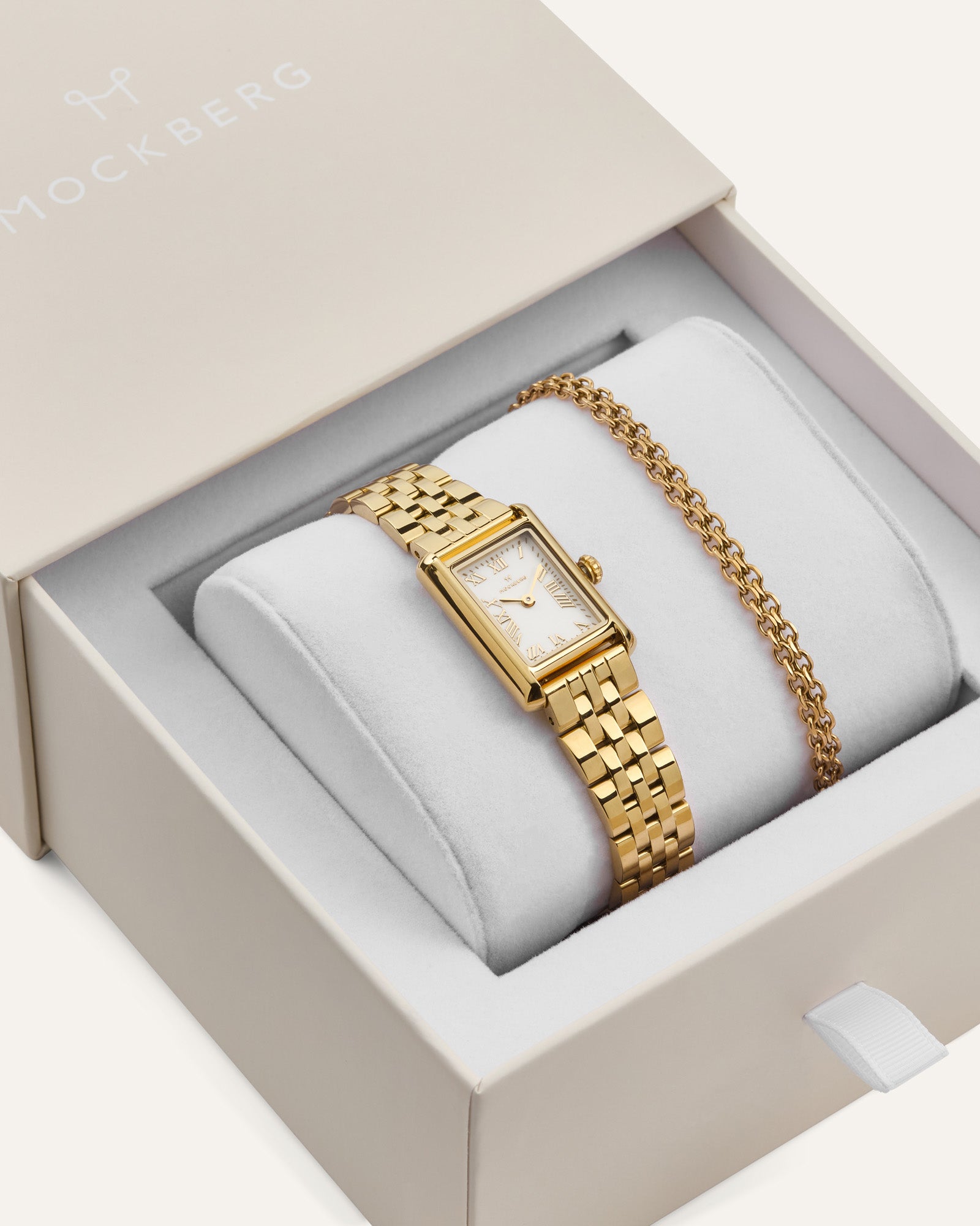 Vacker combo box med vår bästsäljande Timeless klocka och Darling Waterproof armband. Kombinationen skapar den perfekta klassiska looken som passar både till vardags och fest. Klockan och armbandet kommer i en vacker box vilket gör detta till den ultimata presenten till någon du tycker om!