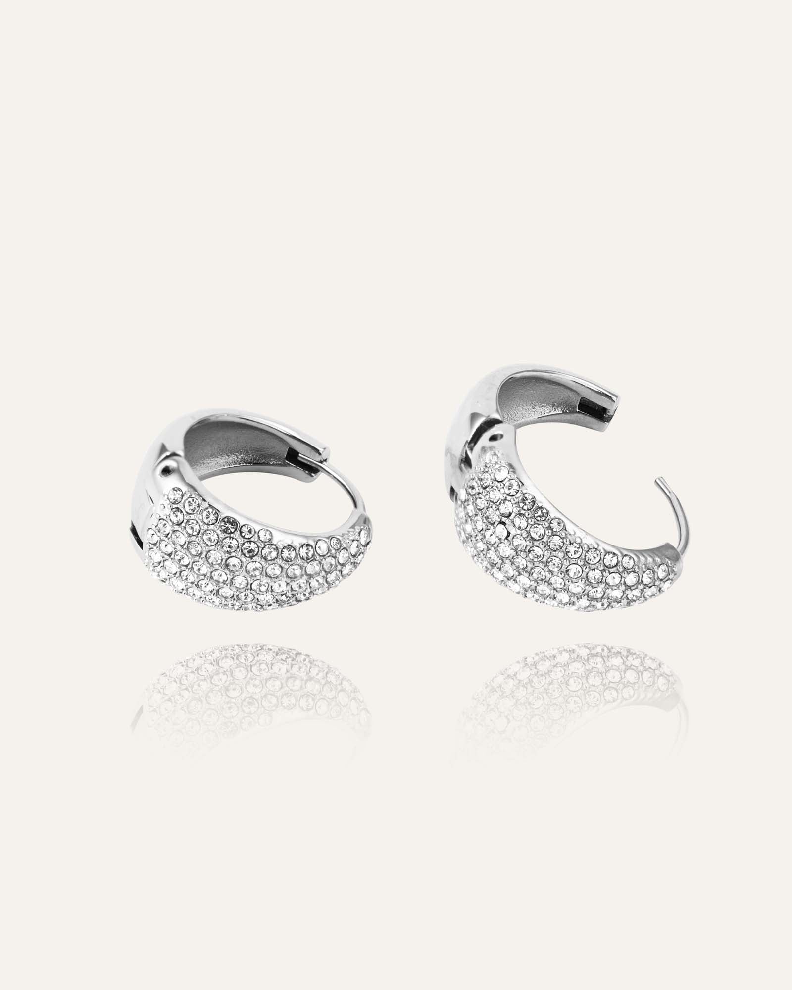Hoop-örhängen med Cubic zirconia-stenar, designade för att ge din look en tidlös och modern elegans. Tillverkade i massivt rostfritt stål, de är både slitstarka och vattentåliga, vilket gör att de behåller sin färg över tid.